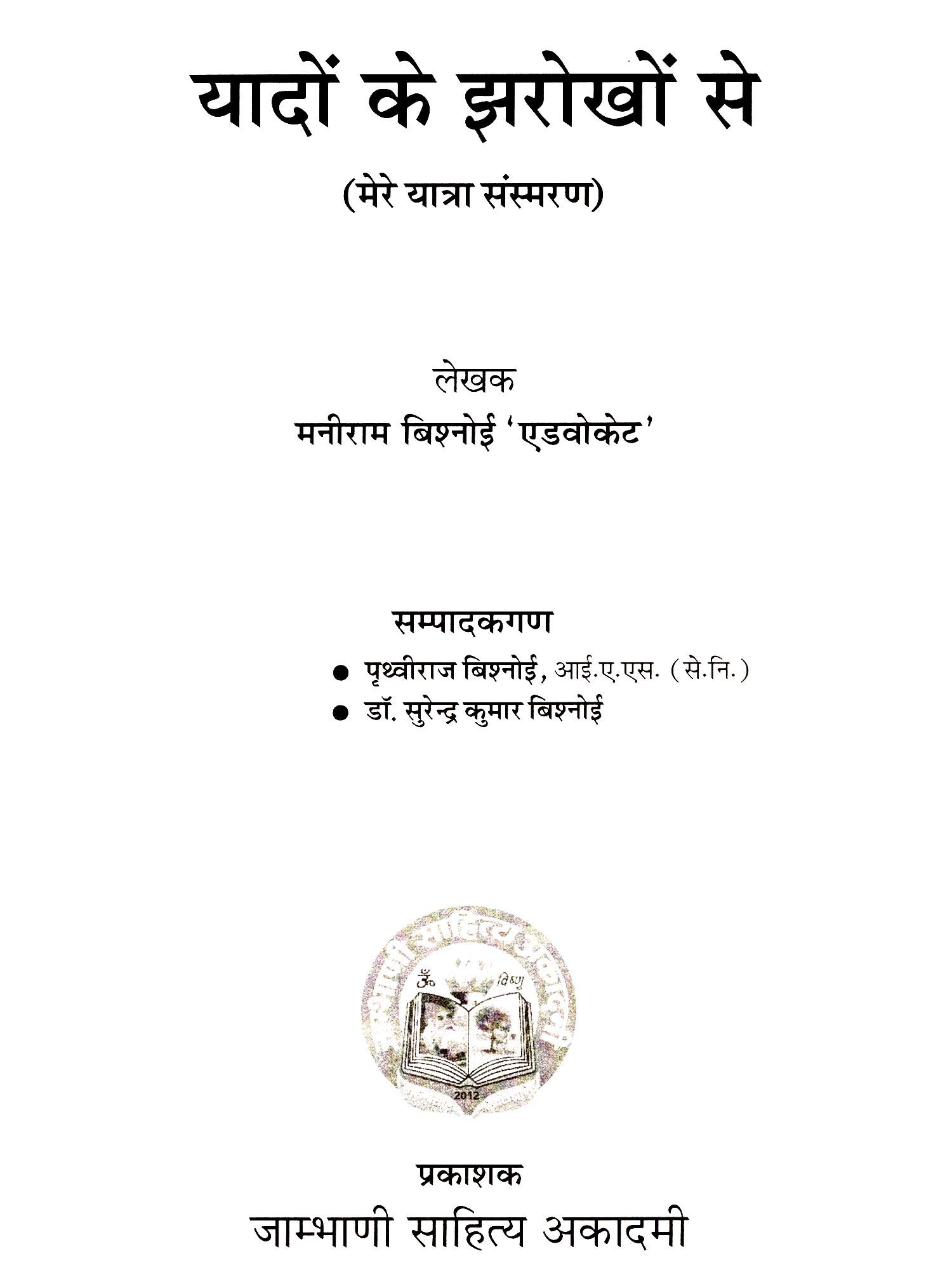 Publisher: Jambhani Sahitya Academy, Rajasthan