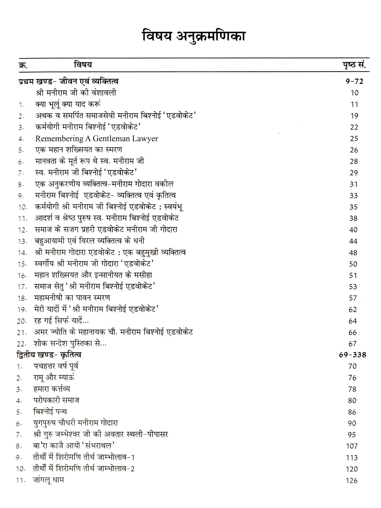 साहित्य समाज का न केवल 'दर्पण' होता है अपितु 'दीपक' भी होता है, इसलिए मुंशी प्रेमचन्द ने साहित्य को समाज के आगे चलने वाली 'मशाल' कहा है। इस दृष्टि से विश्नोई समाज सौभाग्यशाली रहा है कि उसमें पंथ स्थापना के समय से ही साहित्य की रचना प्रारम्भ हो गयी थी। इस साहित्य को श्री गुरु जाम्भोजी को वाणी, दर्शन एवं उनके अनुयायियों से सम्बन्धित होने के कारण 'जाम्भाणी साहित्य' कहा जाता है। पांच शताब्दियों से निरन्तर प्रवाहमान इस साहित्य धारा में स्वर्गीय बाबू मनीराम विश्नोई' एडवोकेट' एक उज्ज्वल नक्षत्र की भांति है। बाबू जी ने लगभग 60 वर्षों तक अलग-अलग विधाओं में लेखनी चलाकर इस साहित्यधारा को सर्सीचने का शुभ कार्य किया था। चाबू मनीराम जी व्यवसाय से वकील थे परन्तु साहित्य में गहन रुचि होने के कारण आपने शोध साहित्य लेखन में अपनी विशेष उपस्थिति दर्ज करवाई थी। बिश्नोई समाज के मुखपत्र 'अमर ज्योति' का प्रकाशन एवं उसका प्रारम्भिक संचालन आपकी साहित्यिक अभिरुचि का ही प्रतिफल था। आप 'अमर ज्योति' पत्रिका में इसके प्रकाशन के समय (1950) से लेकर अपने अंतिम काल (2010) तक निरन्तर लिखते रहे। आपका लेखन विविध रंगों से भरा हुआ है परन्तु गुरु जाम्भोजी एवं विश्नोई समाज आपकी लेखनी के केन्द्र में रहे हैं। श्री मनीराम जी स्वभाव से एक शोधार्थी एवं कर्मशील समाजसेवी व्यक्ति थे, इसी कारण आपके अधिकांश लेख शोधपरक है। यद्यपि जाम्भाणी साहित्य अध्यात्म से तो सराबोर है किंतु गुरु जाम्भोजी की यात्रा वृतांत का ना होना आज भी अखरता है।