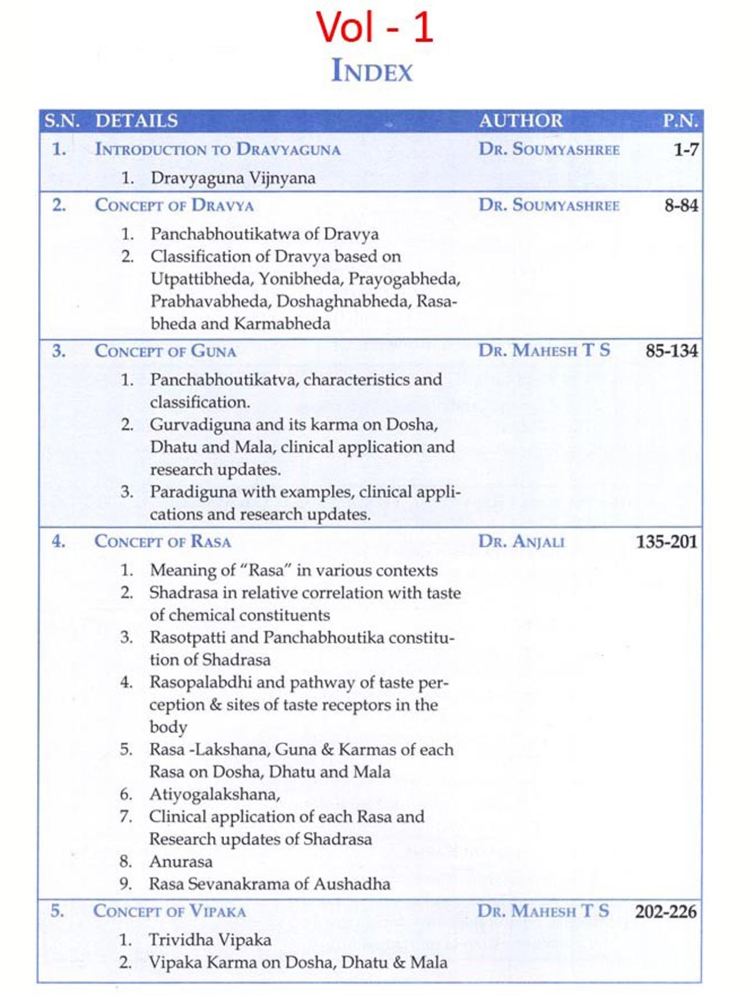 The team of authors have given the much-needed insight into the concepts in this volume. Their immense efforts in compiling and restructuring the different information has given the much-needed insight into the concepts of Dravyaguna.