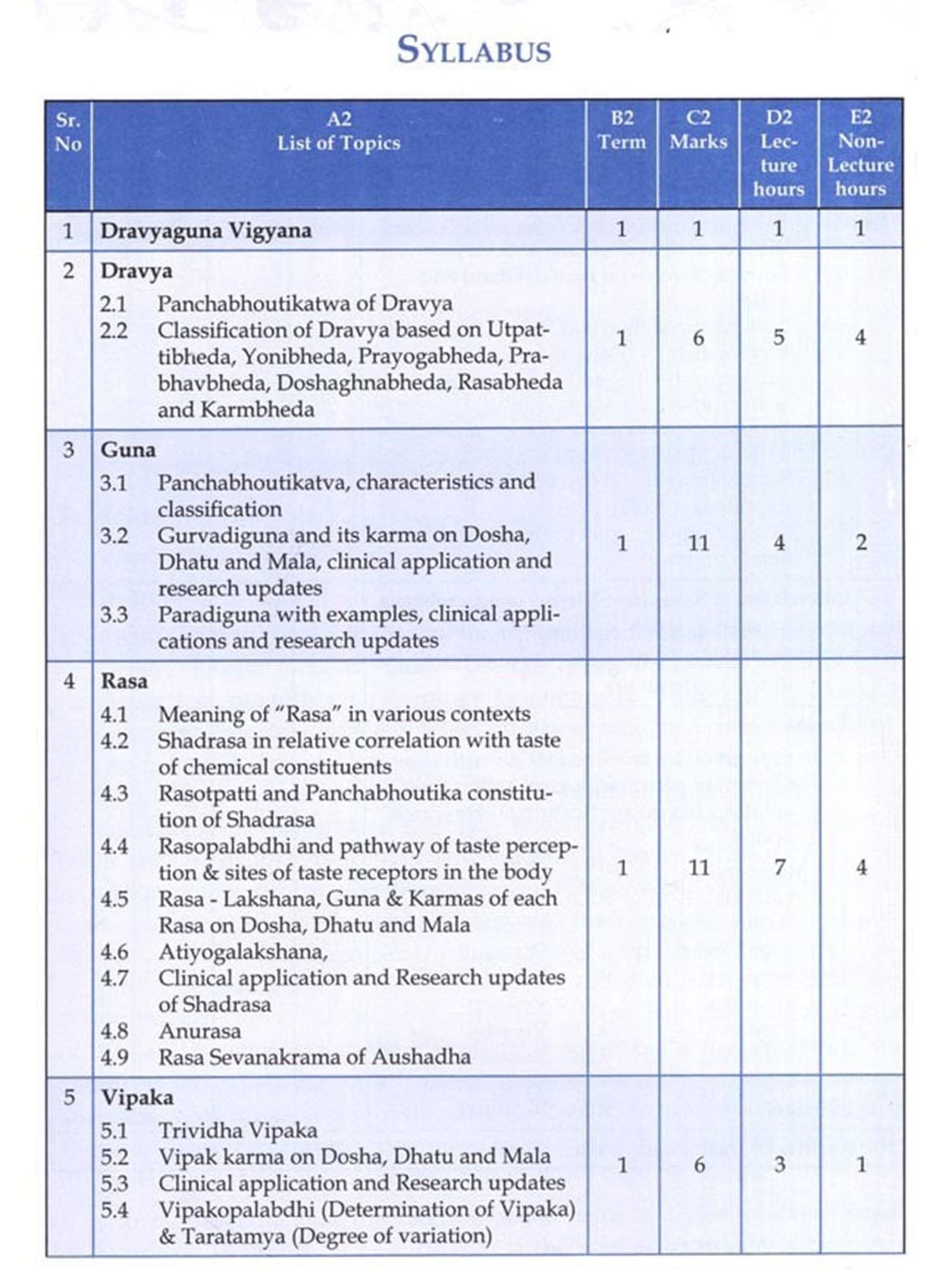The foundation of Dravyaguna is based on the various concepts and principles that have been constituted from the Darshanas, Samhitas and Nighantus. These literature are considered to be authentic and have stood the tests of time till today. But the recent advances in basics of science has given further insight into the understanding of the concepts along with better interpretation of the concepts of Dravyaguna. Thus, to achieve this objective, a new syllabus has been formulated by the National Council for Indian System of Medicine (NCISM), which has been followed in the present text as a guideline for the content.