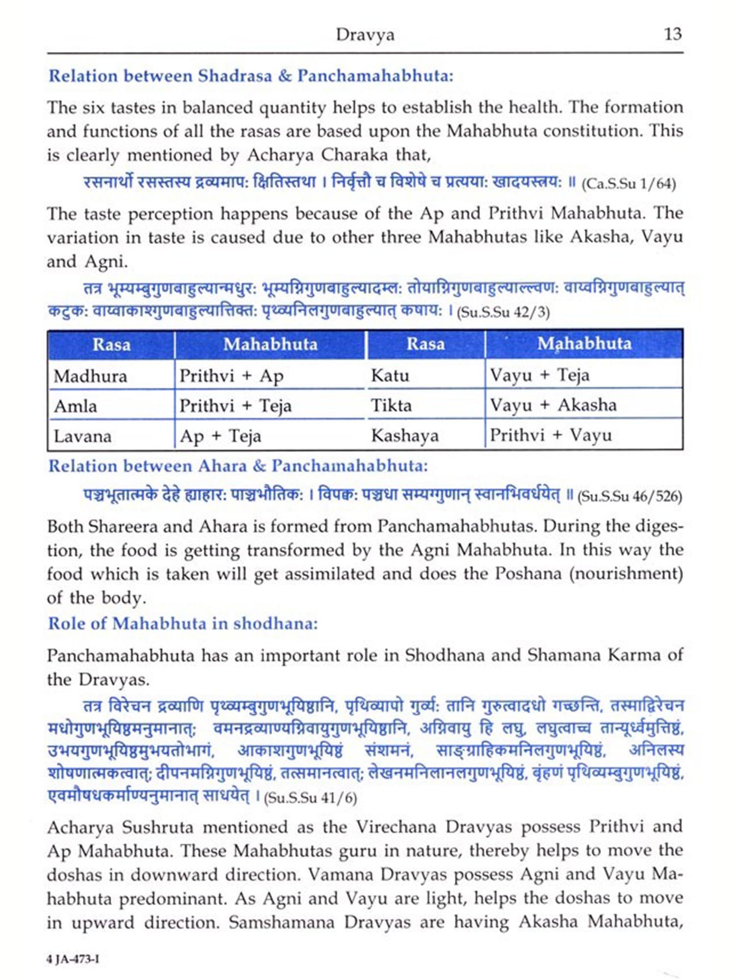 Among the various main treatment components of any system of medicine, substance or dravya assumes a greater importance. It is the basic necessity for a physician to have so that they can treat the needy. Mere presence of substance will not be helpful, but it also needs to be understood and given judiciously to obtain the best benefit out of it. On the contrary, if used injudiciously and ignorantly the same substance may not act as desired and also has a high chance of causing unwanted effects. Hence, it is quite important to know that the knowledge of disease and their treatment along with the right choice of medication for achieving the said objective.