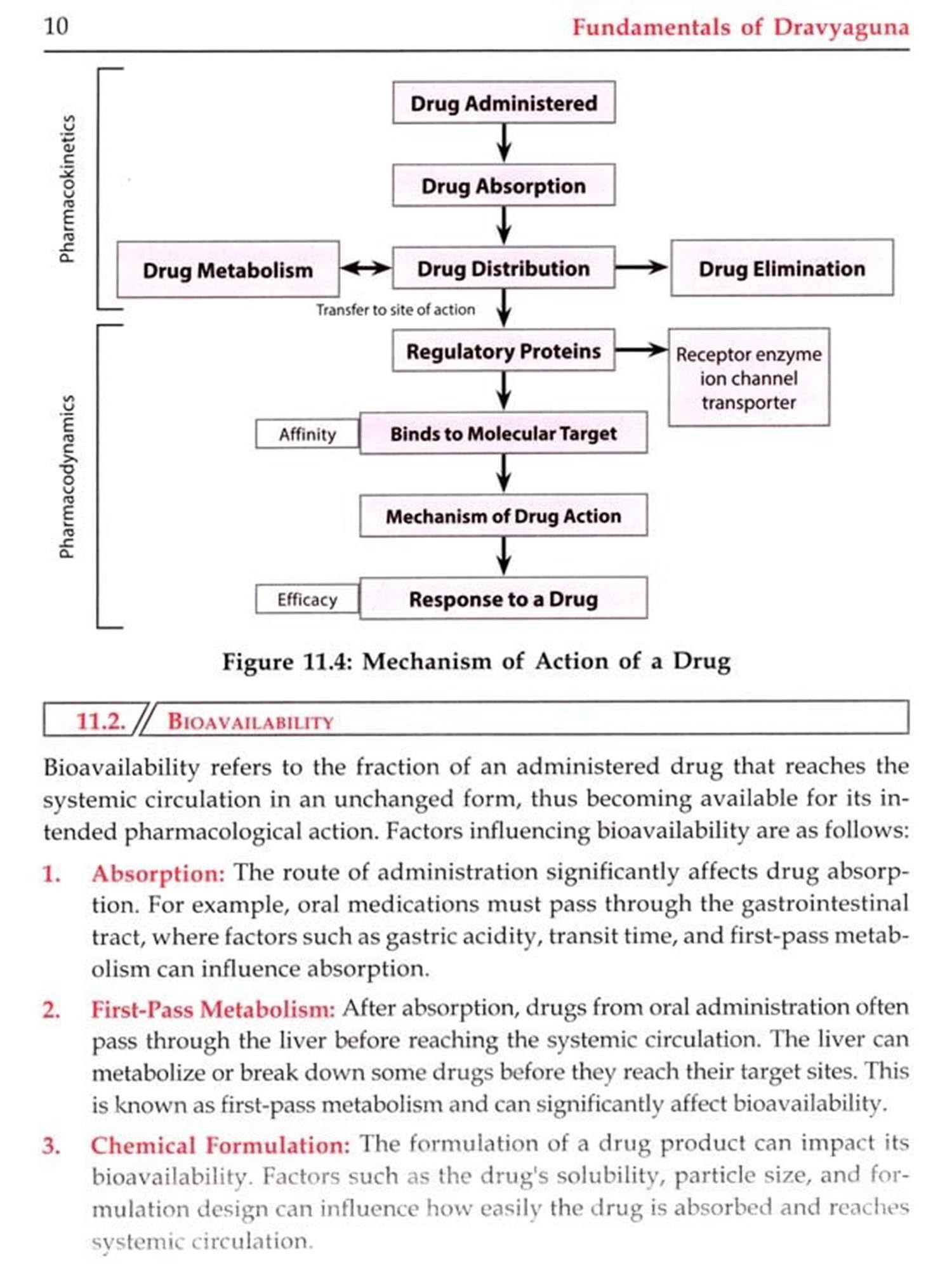 The subject of Pharmacology is the one that deals with all the relative aspects of the substance given as medicaments including the pharmacodynamics and pharmacokinetics. The same is known as Dravyaguna in Sanskrit language as mentioned in the field of Ayurveda. The subject has undergone a considerable growth and understanding during the years right from the time of Vedas. The changes are so evident that it has obtained the status of being said as a branch of Ayurveda in the text Raja Nighantu. It also has obtained literatures that are exclusively dedicated in the form of Nighantus.