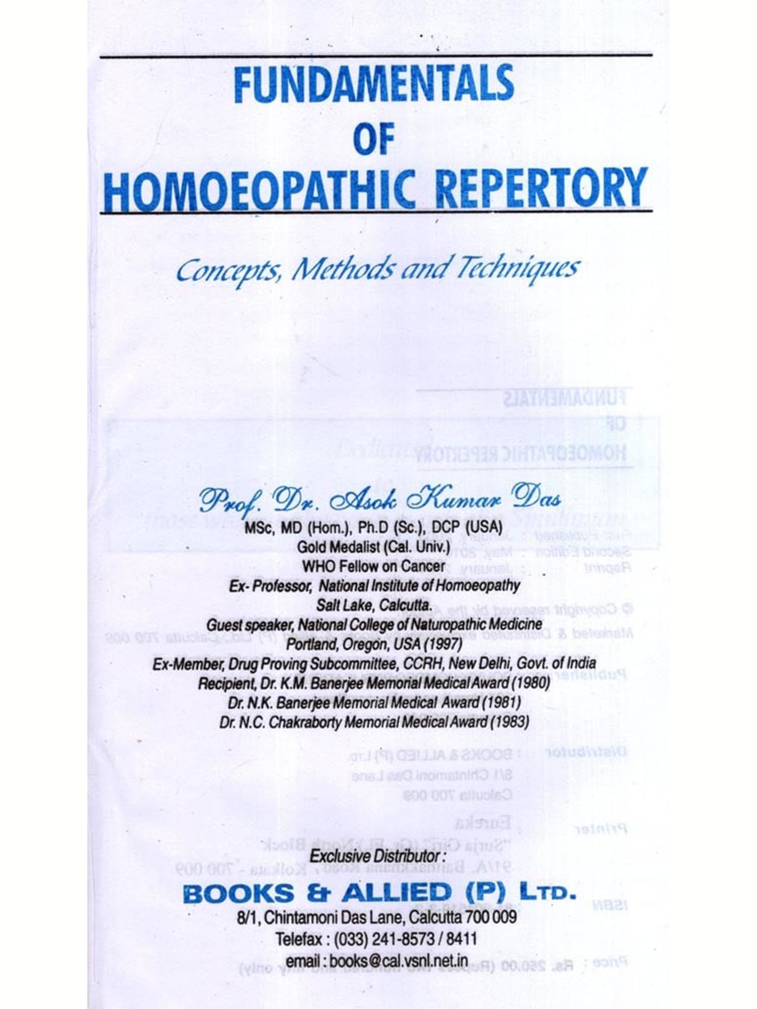 Publisher: Souvik Homoeo Publications, Calcutta