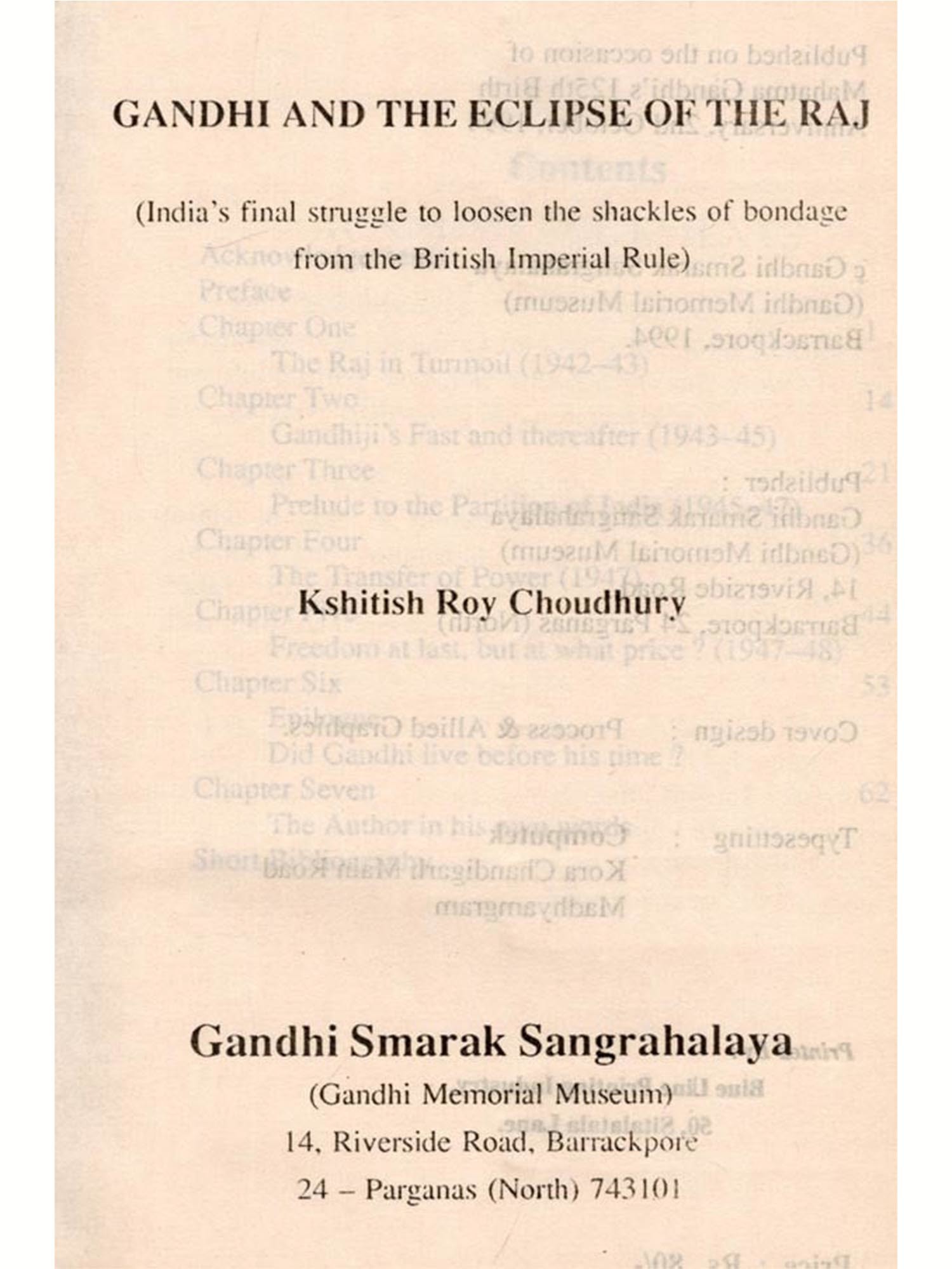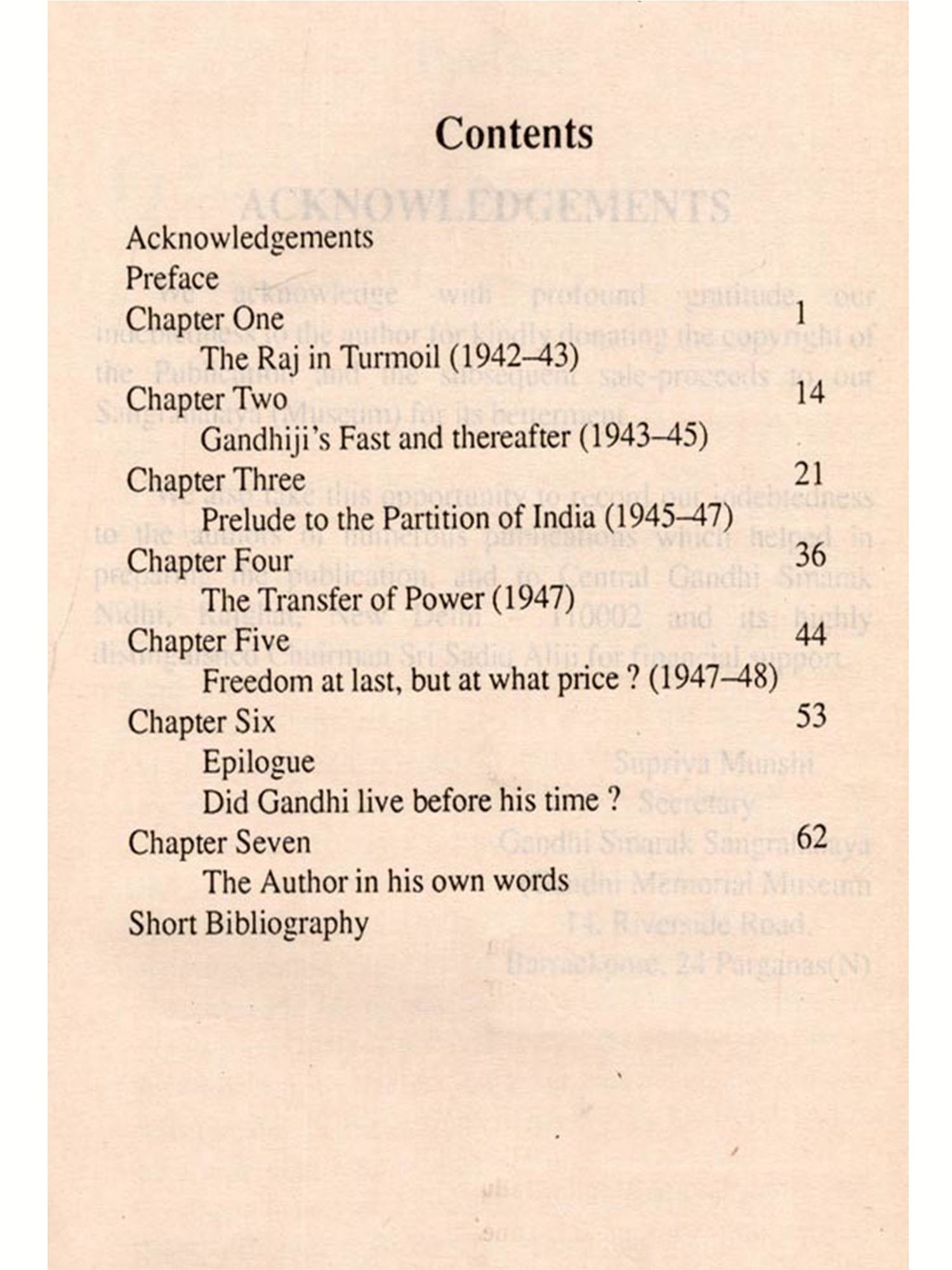 In conclusion, the writer owes his debt for varied help he received from Supriya Munshi, the Secretary and Director, Gandhi Museum, Barrackpur. But for his help the story could not have seen the light of the day. He frequently goaded the writer to speed up the work. He carefully looked into the manuscript, corrected wherever he found discrepancies and made it ready in the present form. The presentation is both narrative and critical.