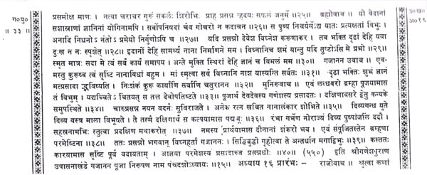Somakanta, faithfully, listens to Ganesapurana ending with Vyasas Ganesa-worship and the consequential boon of omniscience. So the king is not only free from all his ailments but he also attains divinity and leaves for his divine abode by a divine Vimana revisiting Devanagara - his former capital in Saurastra.
