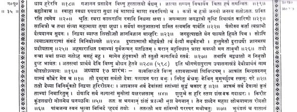 The above listing tallies with the one as in the Venkateshvar Press edition of the Kurmapurana except that the third upapurana named here is Bhamda which could be a printing error for Skanda. There is no Vayaviya, no kalki, no Daiva here.