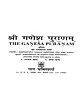 Thus it is quite in the fitness of things that M/S Nag Publishers should have thought of bringing out a reprint of Sriganesa Purana - one of the two Upapuranas (Mudgalapurana being the other one) solely dealing with Ganesa as the Supreme Divine Power.