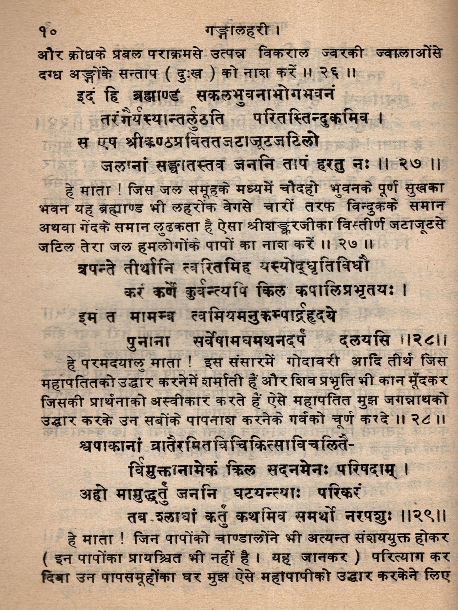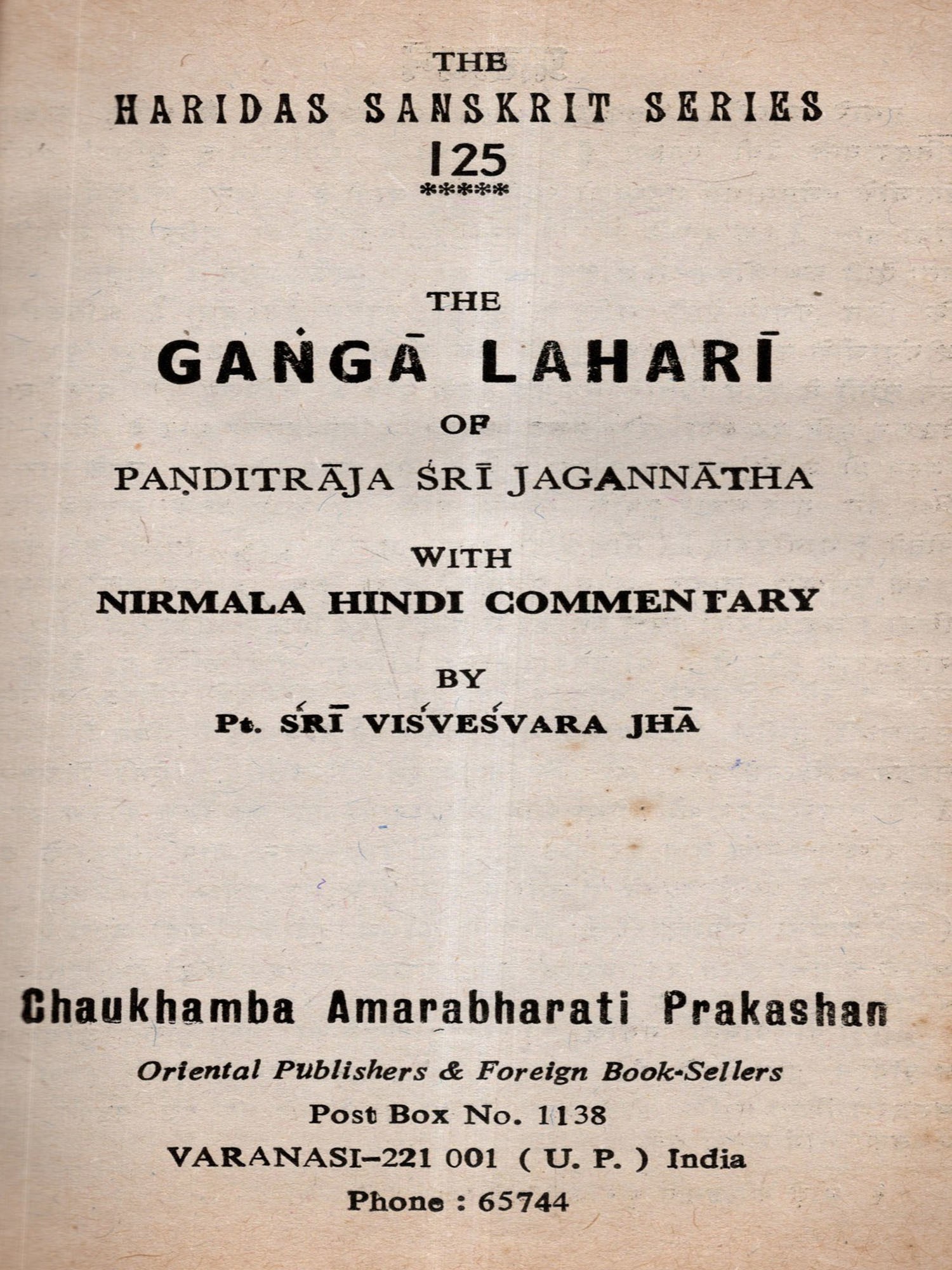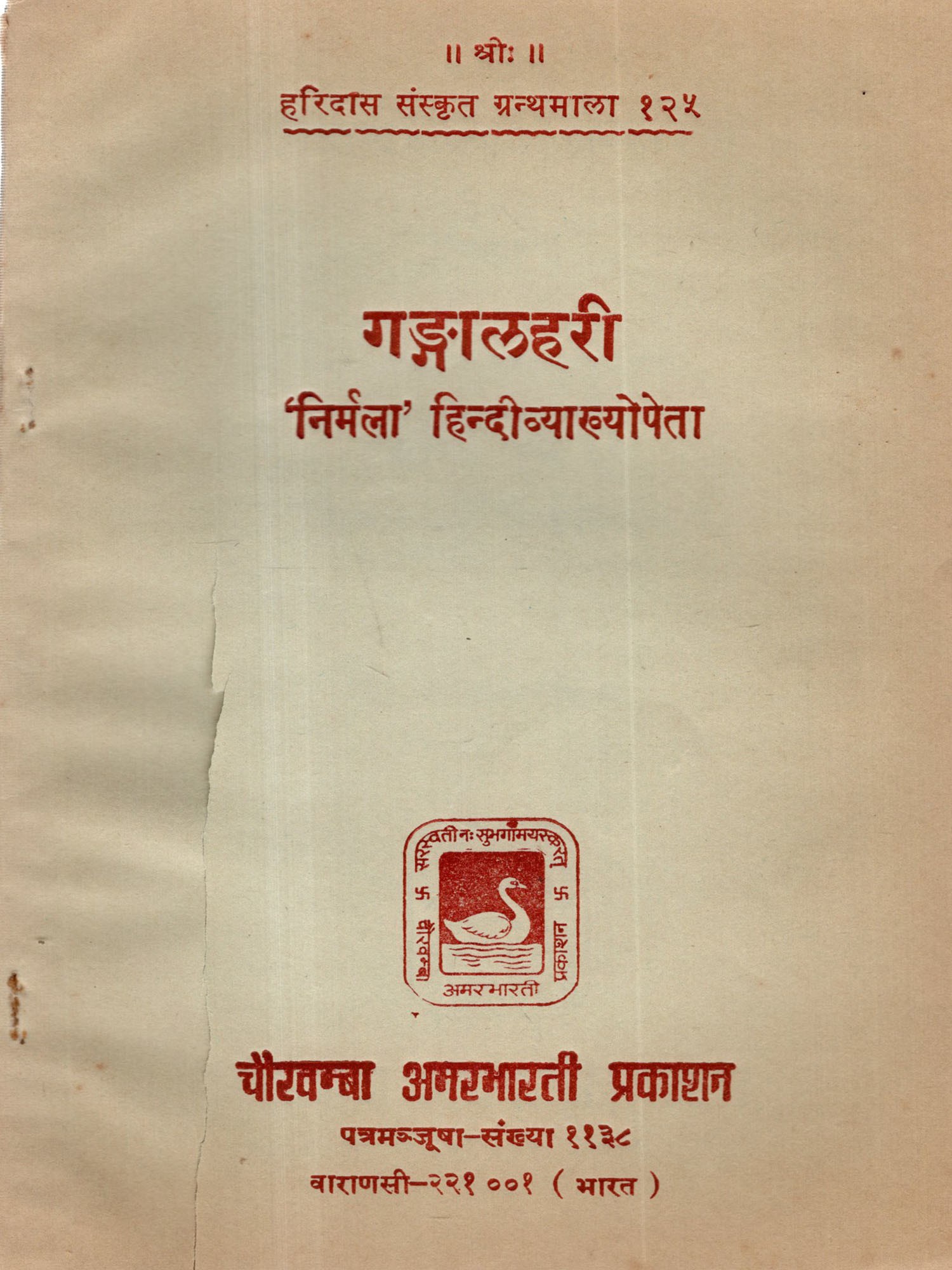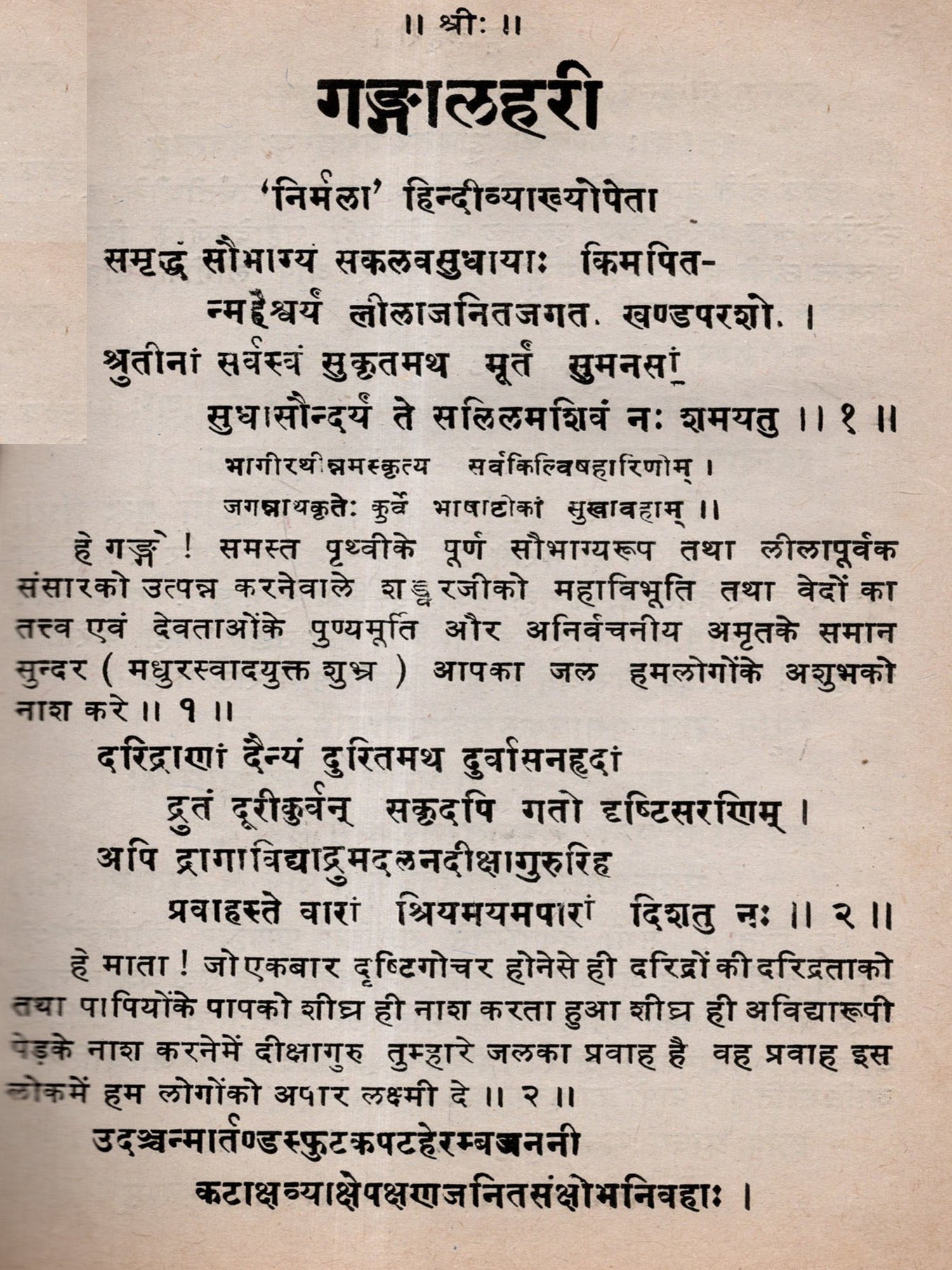 गङ्गालहरी- The Ganga Lahari of Panditraja Sri Jagannatha with Nirmala Hindi Commentary (An Old and Rare Book)