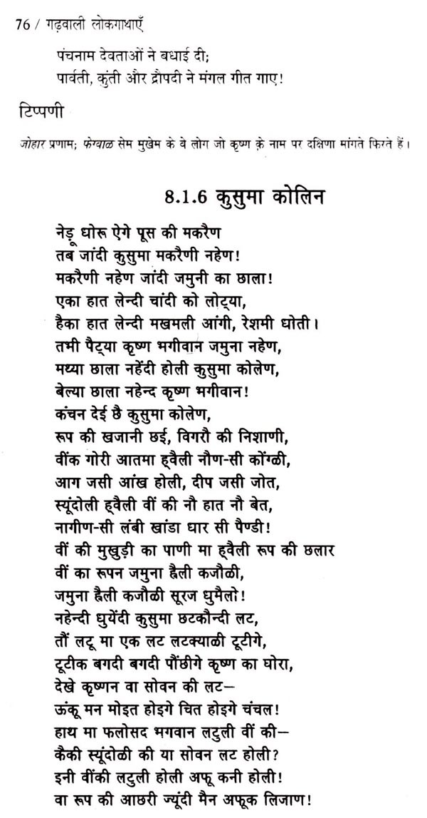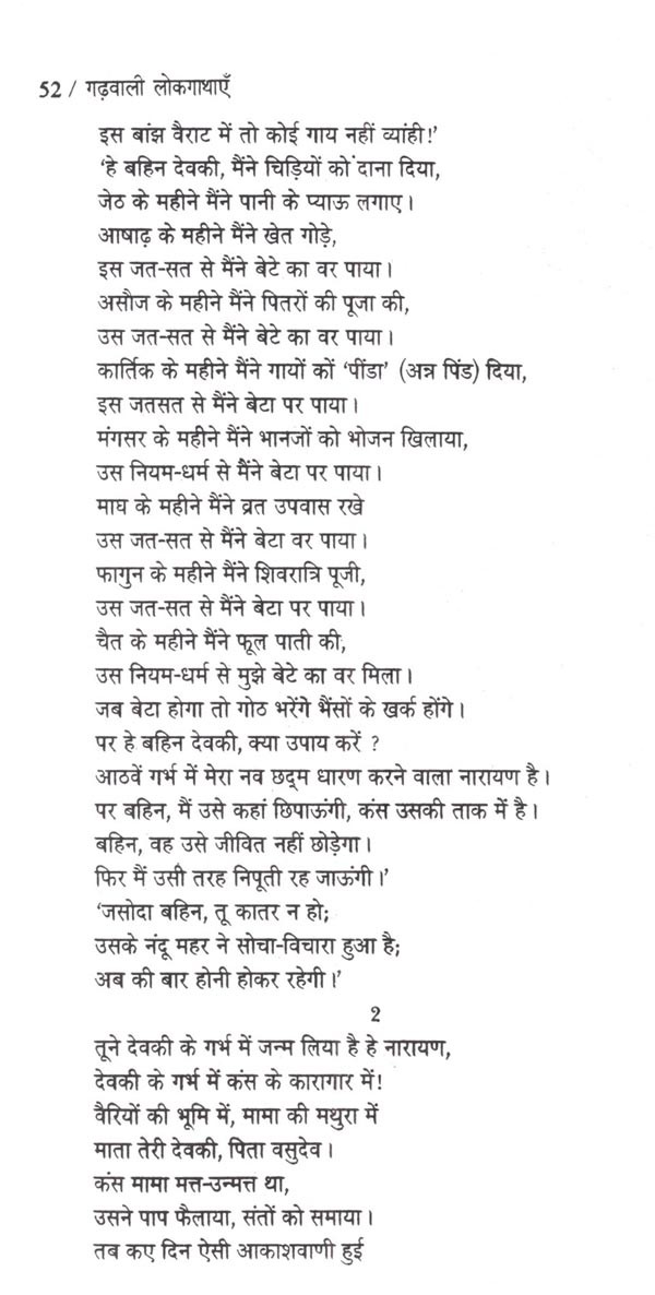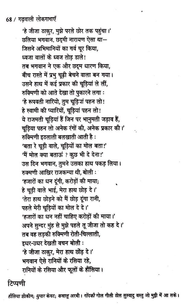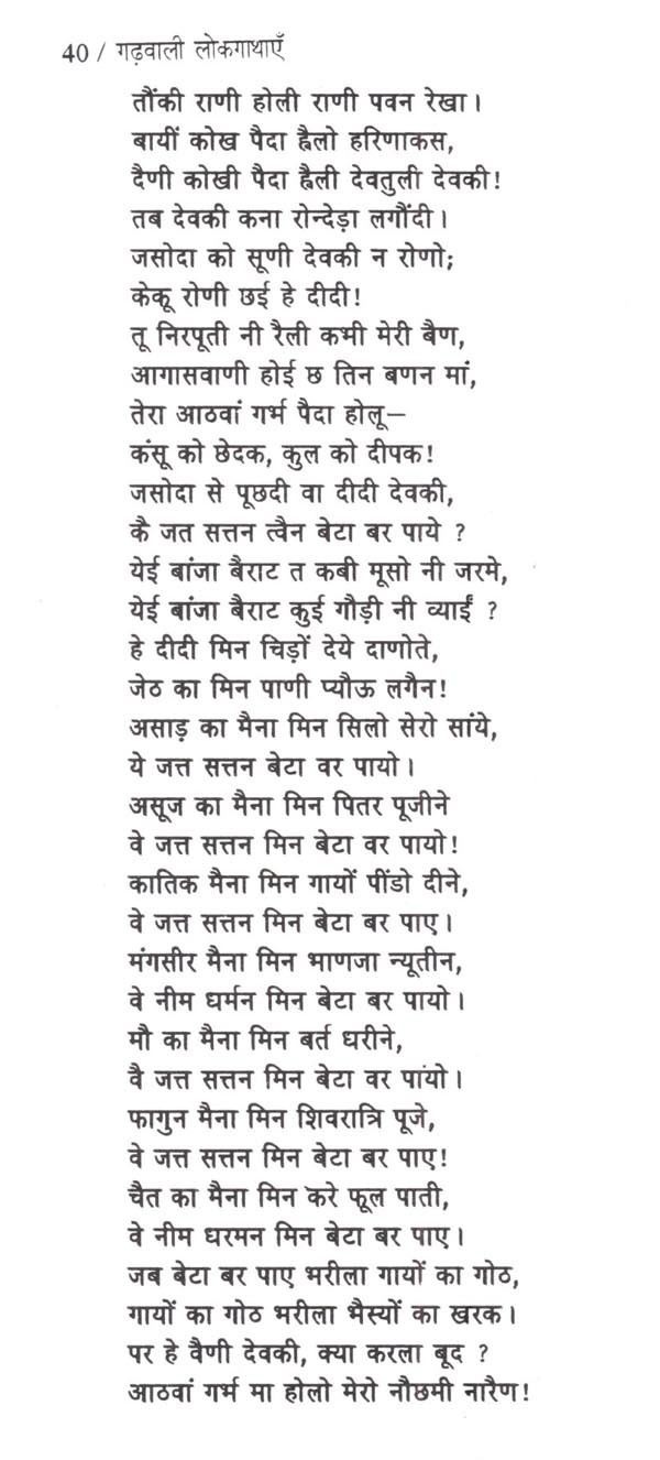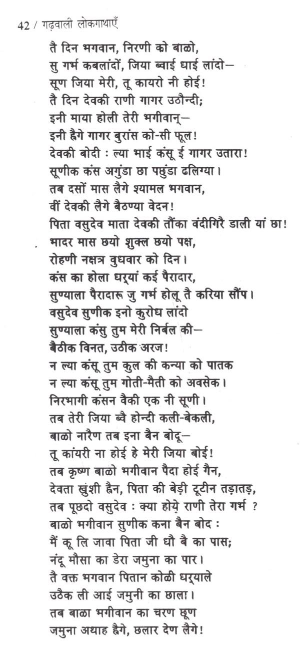 हिमालय प्राचीन काल से ही भारतीय धर्मभावना में पुनीत क्षेत्र रहा है। नदियों और उनके तट पर बरो तीथों की पावनता भी अनादिकाल से चली आ रही है। देवी-देवताओं की पवित्र रखाली के रूप में भी यह क्षेत्र पौराणिक आख्यानों से युगों तक छाया रहा। साध्यकाल में लोकधर्म की अपेक्षा युद्ध जीवन का सत्य बना। वस्तुत गडकल को अपनी सत्ता और सुरक्षा के लिए पूरा फयकाल समस्त उत्तराखंड में सत्ता के संघर्ष का काल रहा जिसमे युद्ध शूर वीरता, भढ़वाली और रोमान का बोलबाला रहा। मध्यकाल शीर्य और सामती जीवन मूल्यों का ही नहीं, धार्मिक आन्दोलन का भी समय रहा। फलत इस काल में रची गई अधिकाश गाधाओं में शैव, शाक्त, कबीरपंथी तथा नाथपंथी प्रभाव के भी दर्शन होते हैं। इस प्रकार धर्म और यथार्थ जैसे कई आख्यानों में गडमड हो गए है। गढ़वाली लोक गाथाओं को मुख्यतः 4 वर्षों में विभक्त किया जा सकता है-जागर, पवाडे, चैती तथा प्रणय गाथाएँ। वीरता और प्रणय का भाव में वीरता का भाव भी है। इसलिए उनका शुद्ध विभाजन कठिन कार्य है। इसी प्रकार चैती गाथाओं में प्रणय का सामती तत्त्व भी निहित है। इसलिए उन्हें भी प्रणय गाथाओं से अलग करना कठिन है। फिर भी वे शुद्ध प्रणय गाथा नहीं है। लोकगाथाओं में कई चीजे जोडी और घटाई जाती रहती हैं केवल कुछ अंश ही स्थिर रहते हैं। एक प्रकार की वर्णनात्मक और नाटकीय शैली और लय की समानता होने के कारण सभी लोक गाथाओं में भाषा का प्रवाह होता है तथा भावों, अभिप्रायों, टेक तथा वाक्यों या वाक्यांशों की पुनरावृत्ति से एक प्रकार की सुसंबद्धता बनाई रखी जाती है। लोक-गाथाओं का मंचीय पक्ष यह है कि जागर में बाकायदा 'घडियाला' या मंडाणा लगता है, देवता नृत्य करता है प्रस्तुत पुस्तक गढ़वाल की लोक संस्कृति और लोक गाथाओं को भावी पीढ़ी के लिए संरक्षित रखने के संदर्भ में एक मौलिक एवं गंभीर कार्य है।