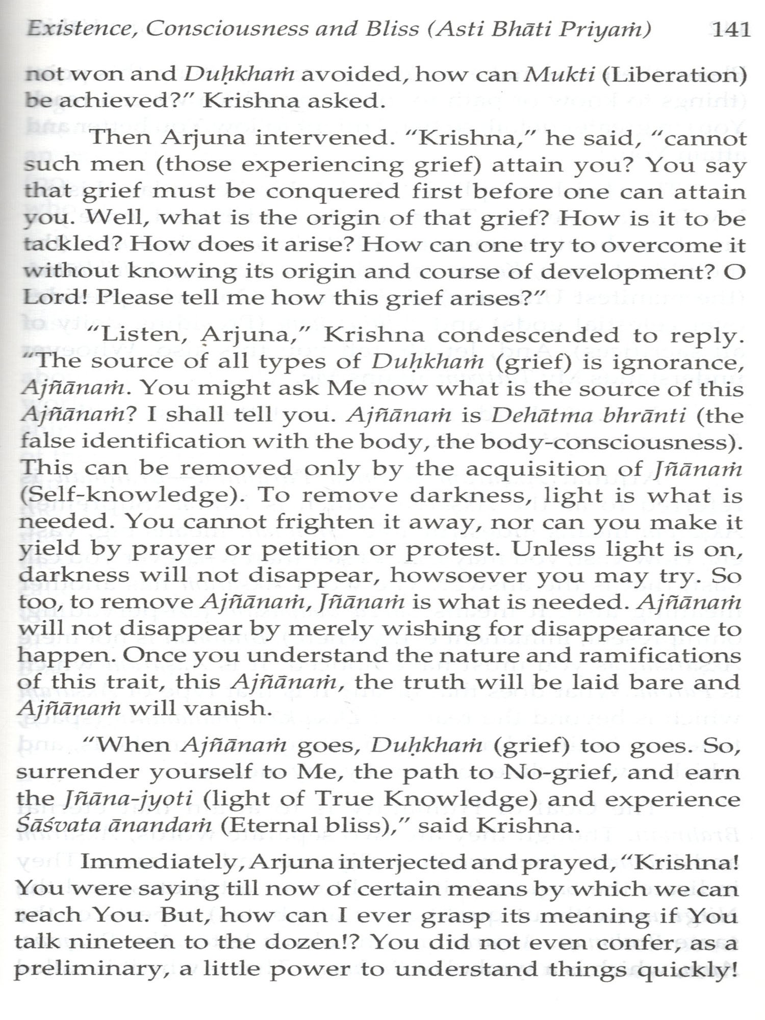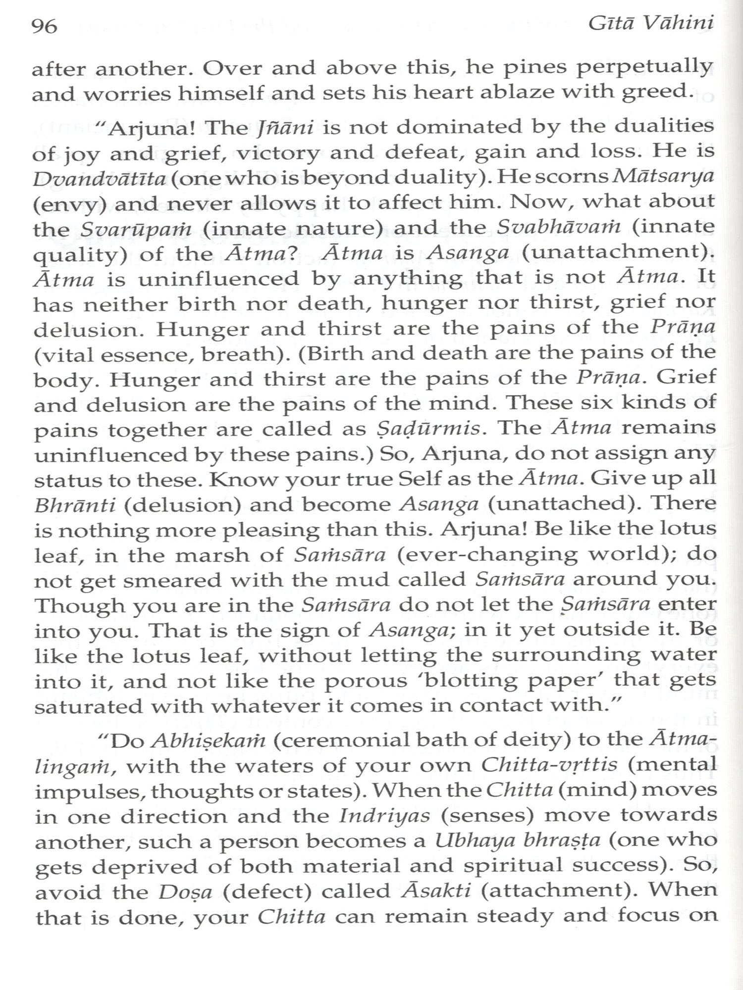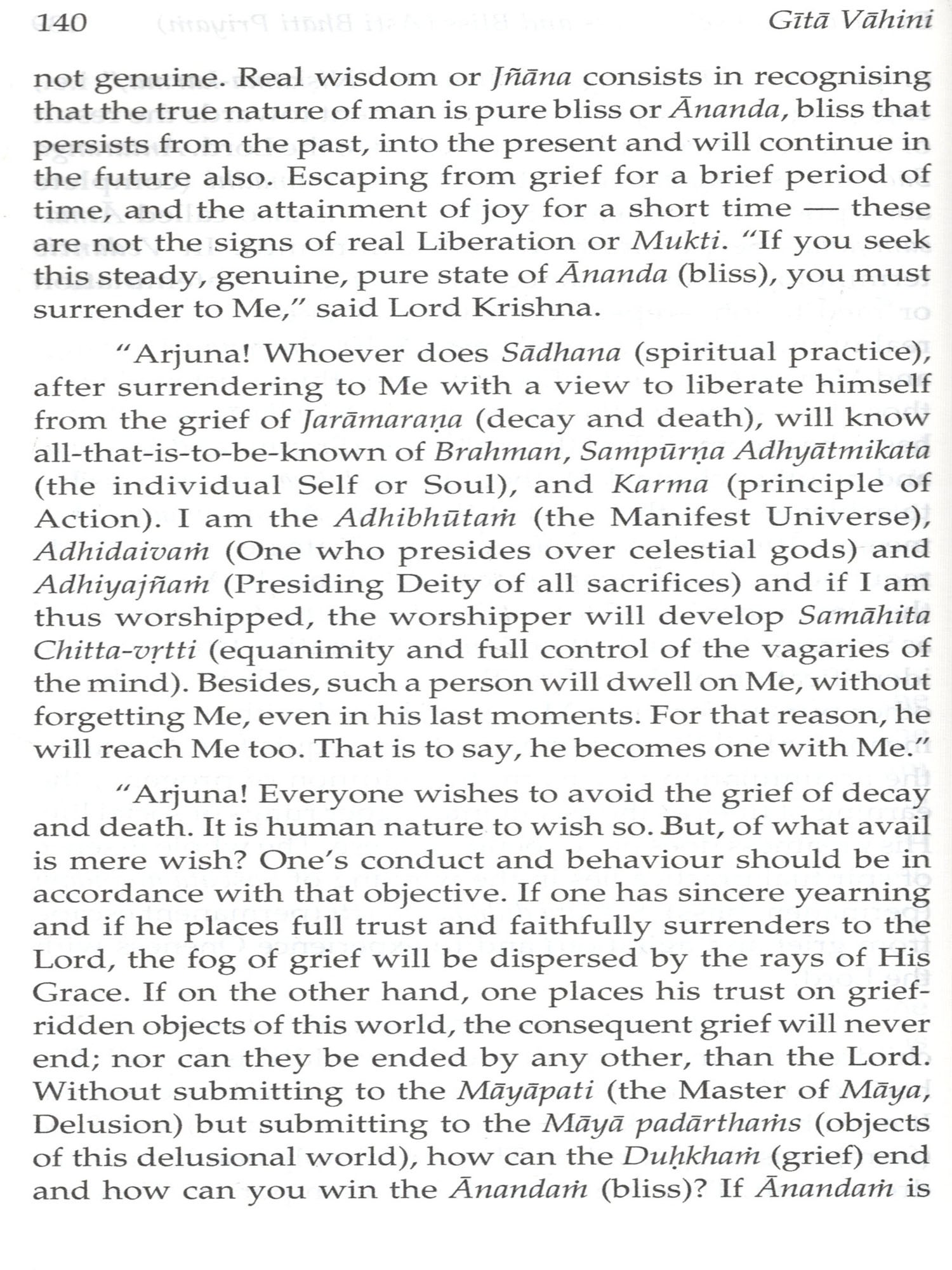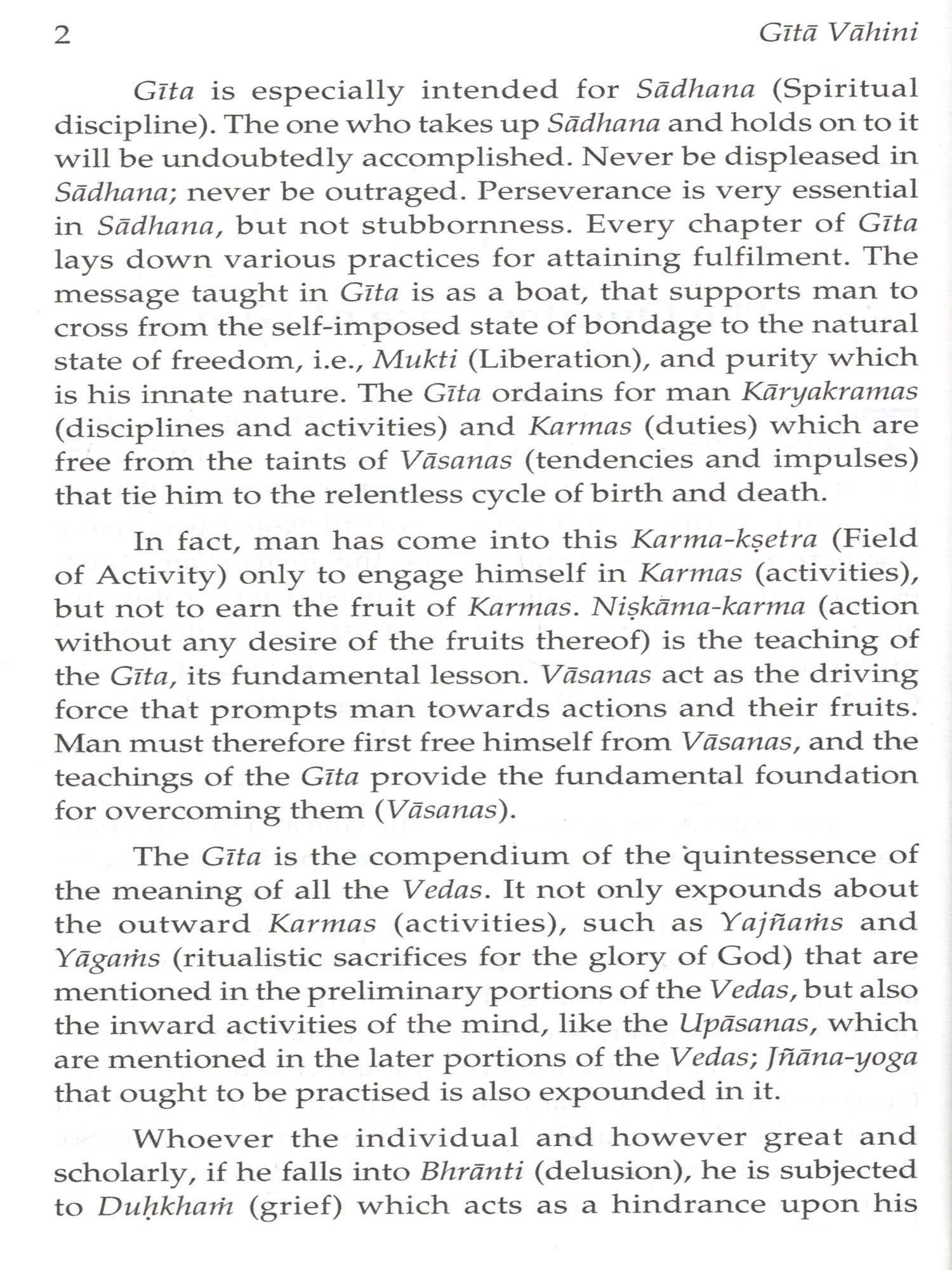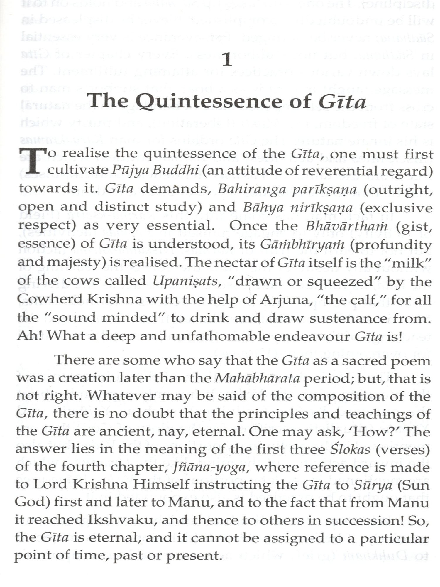 This is not a commentary or summary of the divine message that was given by Lord Krishna to Arjuna. It conveys the same message in a simpler form to us in order to remove our delusion and confer faith and strength on us so that we may realise our own reality.