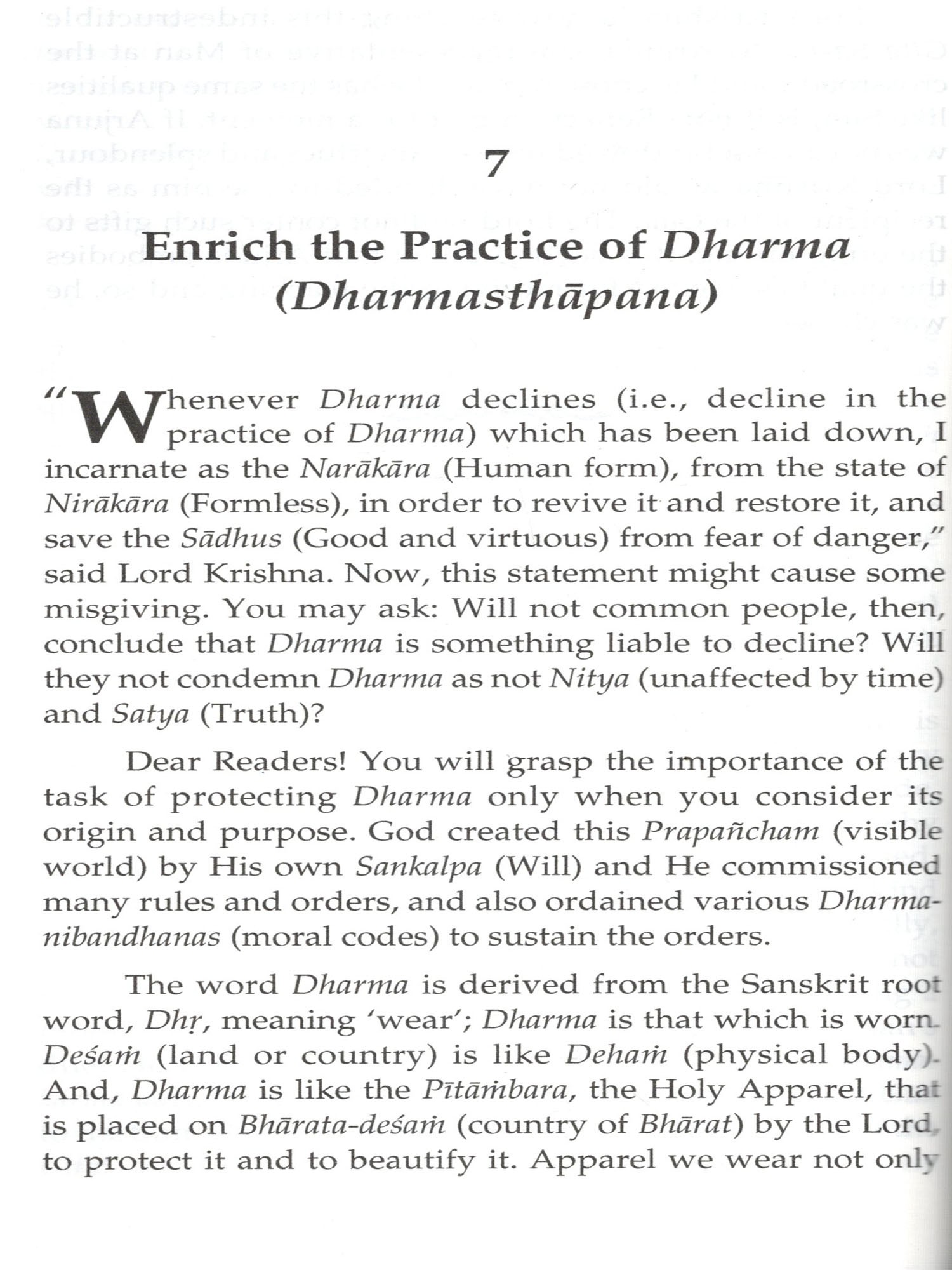 We too can become proper instruments in restoring Dharma, if we follow the lessons that Bhagawan teaches through this book.