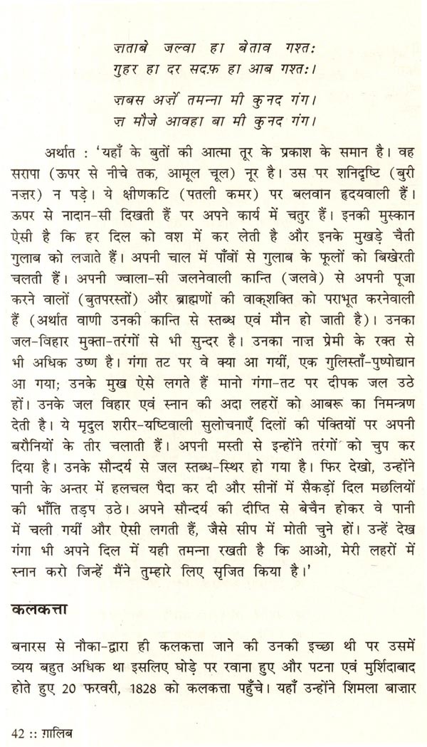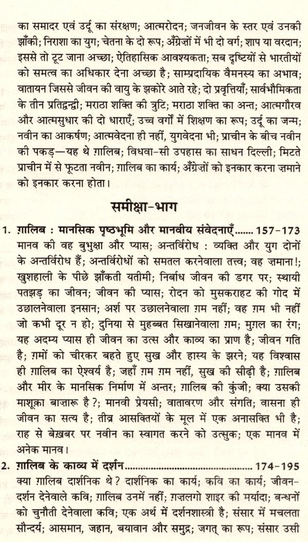 किसी के लिए भी ग़ालिब का व्यक्तित्व और कृतित्व समझ लेना, समझा देना आसाँ नहीं है। यौवन की तरंगों का यह रंगीन शाइर बाहर से जितना मोहक है, भीतर से उतना ही जटिल और विविध भी। ग़ालिब का काव्य-लोक सामुद्रिक संसार की तरह उलझा, विचित्र और खूबसूरत है- कहीं भावनाएँ शीशे की तरह पारदर्शी और कहीं कल्पनाएँ आँख पर उठ आयी जल की उज्ज्वल परतों की तरह पवित्र एवं पाठक को डबडबा देनेवालीं। ग़ालिब के बारे में सबसे क़ीमती बात निःसंकोच यह कही जा सकती है कि वो अपने जीवन-दर्शन में आधुनिक और अधुनातन खूबियाँ समाविष्ट किये हुए हैं और इसीलिए आज भी महान हैं, आज भी पहले से अधिक लोकप्रिय रामनाथ सुमन ने प्रस्तुत ग्रन्थ में बस किया क्या है कि बहुत अधिक लोकप्रिय इस महाकवि की रहस्य में छपी ऊँचाइयों को अपनी पैनी प्रतिभा से पूरी तौर पर अफशाँ कर दिया है-बचा शायद बहुत कम होगा, पाठक स्वयं देखेंगे। प्रस्तुत है ग़ालिब का यह नया संस्करण।