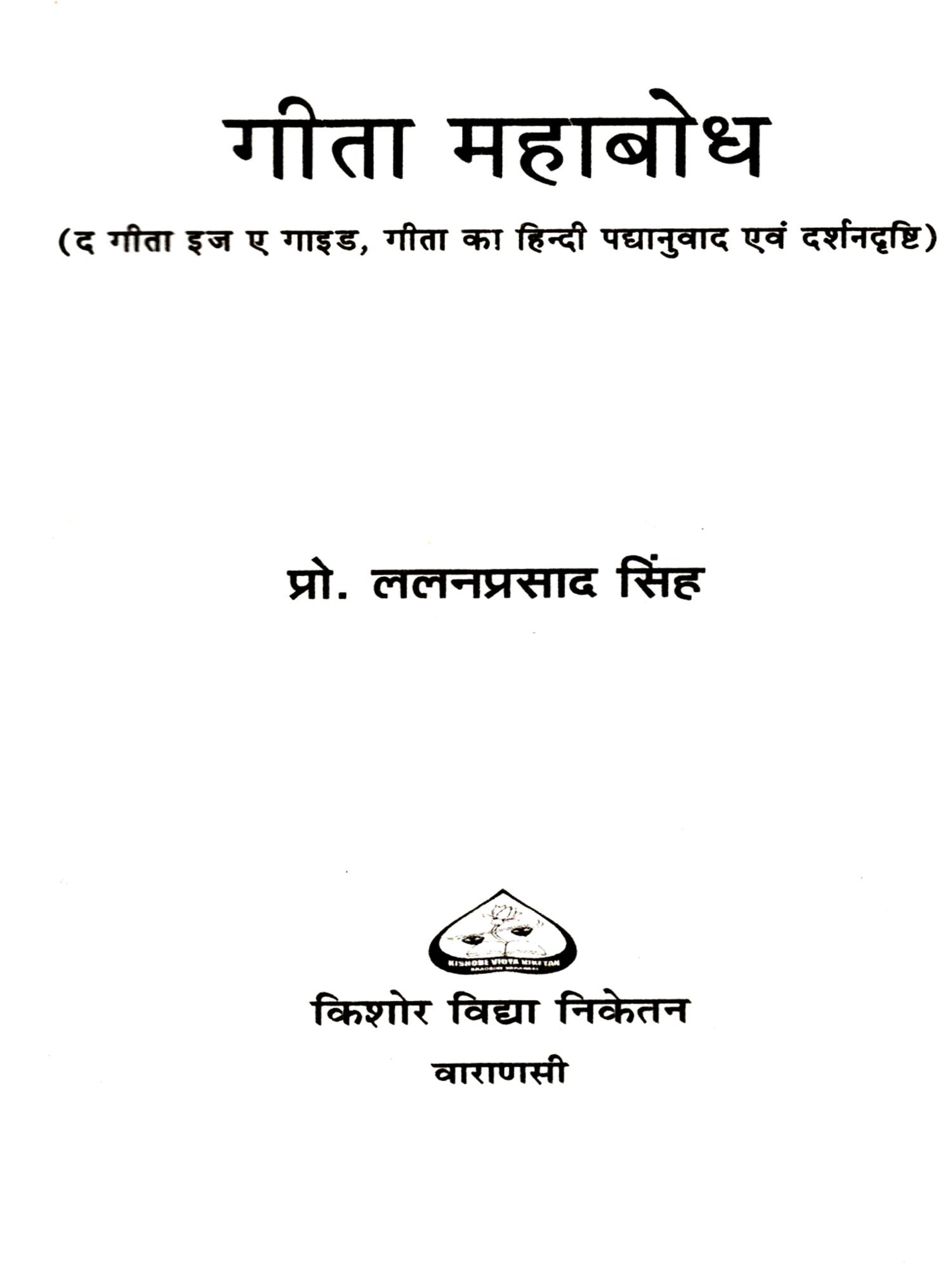 गीता महाबोध: Gita Mahabodh (The Gita is a Guide, Hindi Verse Translation and Philosophy of the Gita)