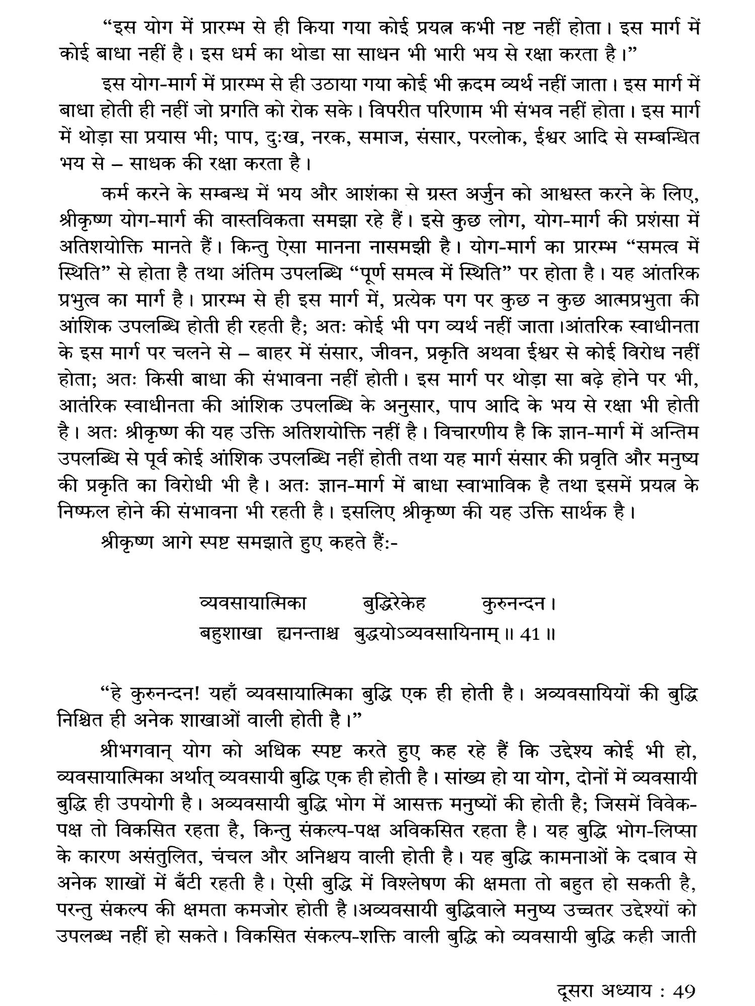 श्रेयकामी मनुष्य को कर्ममय जीवन अनिवार्य बन्धन के रूप में अनुभूत होता है, जिससे वह निस्तार पाना चाहता है। वह अपने लिए धर्ममय कर्म-निर्धारक विधान अथवा कर्म से निवृत्ति का उपाय खोजता है। वह व्यवहारिक मार्ग खोजता है, जिस पर वह अपनी स्वतंत्र इच्छाओं का निवेश करके, यथाशीघ्र परमशान्ति और मुक्ति को उपलब्ध हो सके। ऐसे मार्ग को ही योग के नाम से जाना जाता है। गीता उत्कृष्टतम योग-शास्त्र है। इसीलिए गीता मुमुक्षुओं के लिए, अत्यन्त उपयोगी है। किन्तु यह अत्यन्त गूढ़ ग्रन्थ है। इसके आशय को सरलतापूर्वक समझाने के लिए, अनेकों ग्रन्थ लिखे गए हैं और आगे भी लिखे जायेंगे। अनेक विद्वानों ने गीता की अथाह गहराई में डूबकर, उसमें से ज्ञान के मोतियों को ढूँढने का प्रयास किया है। आगे भी ऐसे प्रयास होते रहेगें। किन्तु गीता के प्रायः टीकाकारों द्वारा गीता में गर्भित श्रीभगवान् के संदेशों को खोजने पर अधिक ध्यान नहीं देकर, सारा ध्यान उनके अपने मतों अथवा अन्यान्य शाखीय-वैदिक मतों को ही स्थापित करने पर केन्द्रित रखा गया है। जरूरत है कि आग्रह-मुक्त होकर गीता में गर्भित श्रीभगवान् के यथार्थ संदेशों की खोज होती रहे।
