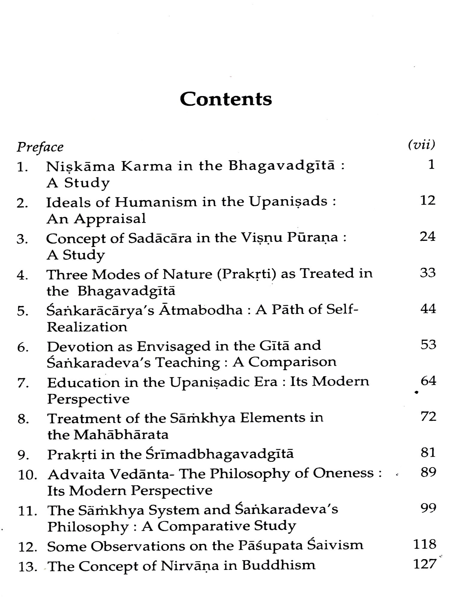 This work is a collection of Research Papers devoted to Upanisad, Purana, Gita, the schools of Indian Philosophy like Samkhya, Vedanta, Buddhism, Saivism and the philosophy of Sankaradeva as well. The papers have already been published by the author in different Journals in different educational institutions of India. Since it is not easy to manually access these journals at a time from different sources, so keeping this view in mind, the author has brought these papers together under a single work. The work contains thirteen papers.