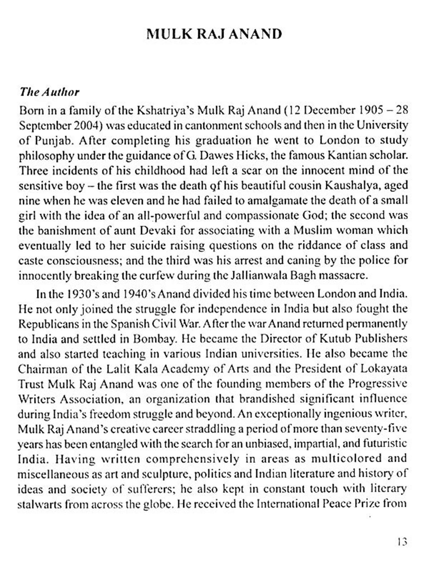 'Twice-born Indian fiction in English is now a well-recognized globally-respected area of English literature. Books come streaming in in the market, many of them being award-winning best-sellers, and, their makers held in high respect by the reading public all over the world. But it is the story of a few years, not even a century. When Untouchable of Mulk Raj Anand was published in 1935, it was a big milestone, as if it was the starting point of a new journey, a story written in English language with a theme thoroughly Indian, richly topical and yet having universal symbolism. Anand wrote quite a few novels in quick succession, cach dealing with social and political problems of the time, and the time was of hope and despair, suffering and sacrifice, confusion and uncertainties. Those were the years around 'independence', and this independence was not just a change in the political scenario, a shift from British administration to Indian administration or the replacement of the union jack by our own tri-colour, but the birth of a new civilization with all the pangs and possibilities of a new beginning.