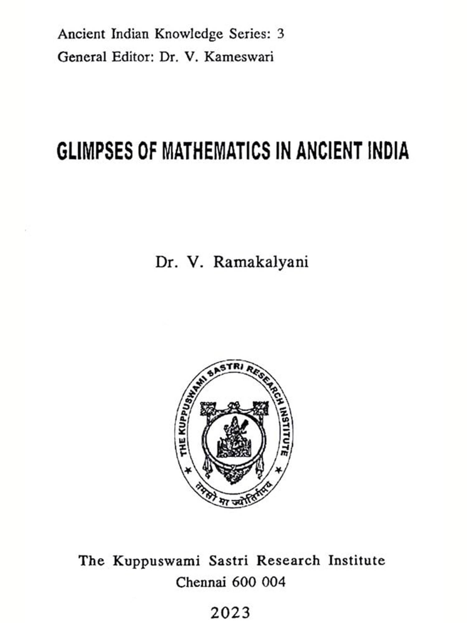 Publisher: THE KUPPUSWAMI SASTRI RESEARCH INSTITUTE