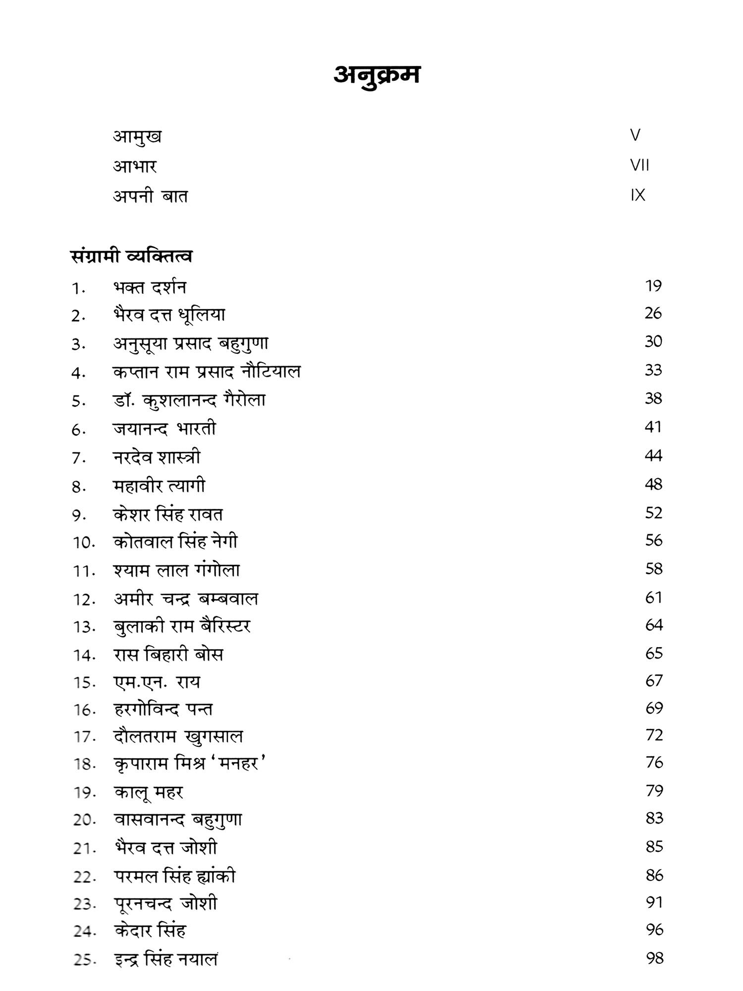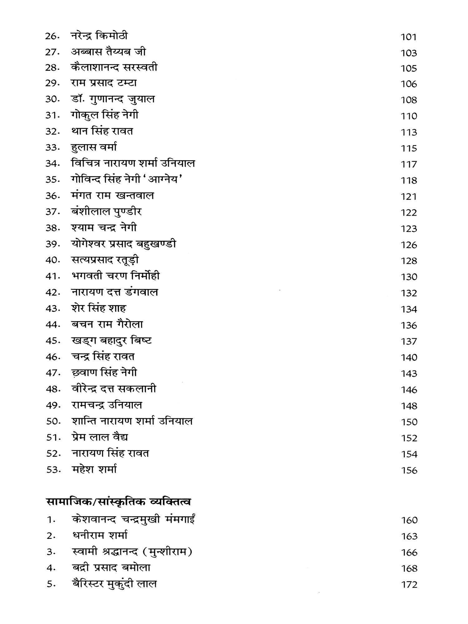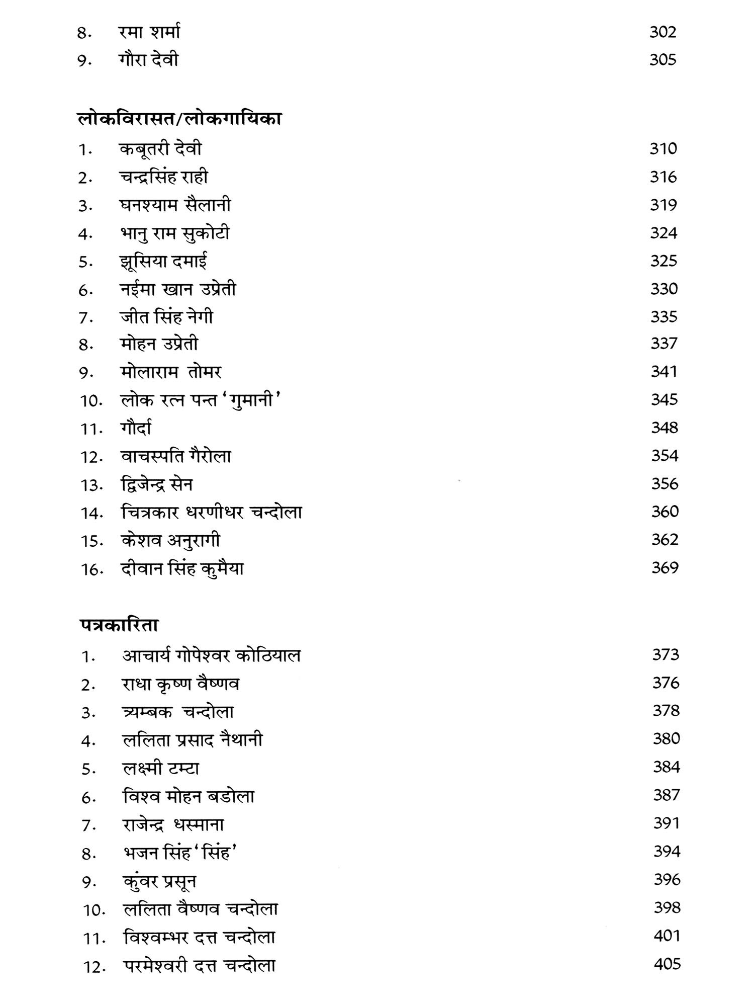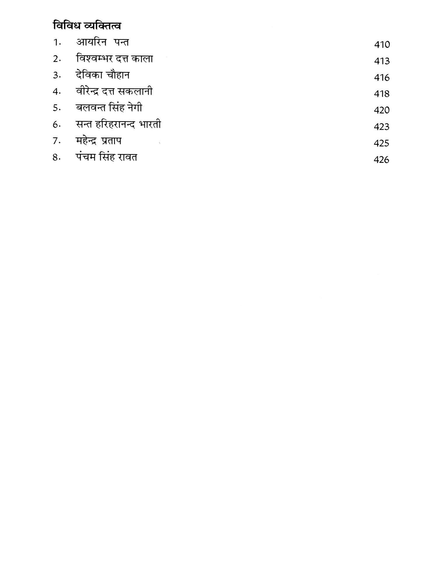 इस संकलन में बहुत ऐसे नाम भी हैं जिन्होंने उत्तराखण्ड से बाहर रह कर भी इस अंचल की पहचान अपनी शिक्षा, योग्यता और नेतृत्व के गुणों के कारण देश की विशिष्ट पहचान बनाई है। इनके परिजनों द्वारा भी जिसमें श्रीमती मीरा चौहान, प्रो. विमल गैरोला, प्रो. सुनील कुमार सहित प्रो. सुरेखा डंगवाल, कुलपति दून विश्वविद्यालय, डॉ. संजय टम्टा, नैनीताल विश्वविद्यालय के सहयोग के प्रति भी आभार प्रकट करना अपना नैतिक दायित्व समझता हूँ।
