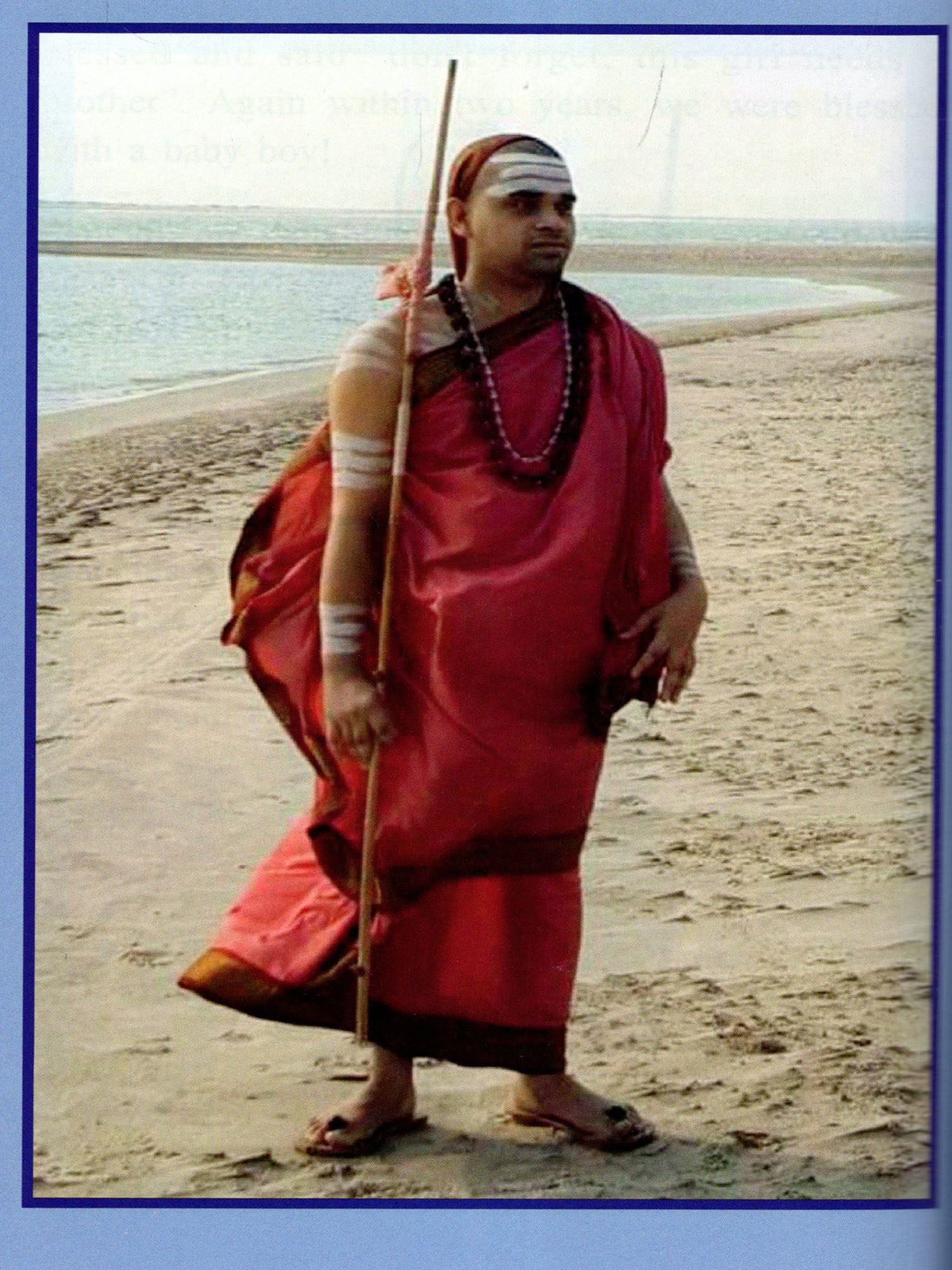 The serene majestic form of His Holiness is as radiant as the morning sun. The waves of mercy in His eyes alleviate our afflictions. His face, illumined with intellect, always bears a benign smile. His countenance, filled with grace, is like a fully blossomed lotus. His appearance, akin to the full moon of compassion, reflects the brimming divine ecstasy within Him. Words are insufficient to describe neither His divine form nor His divine persona.