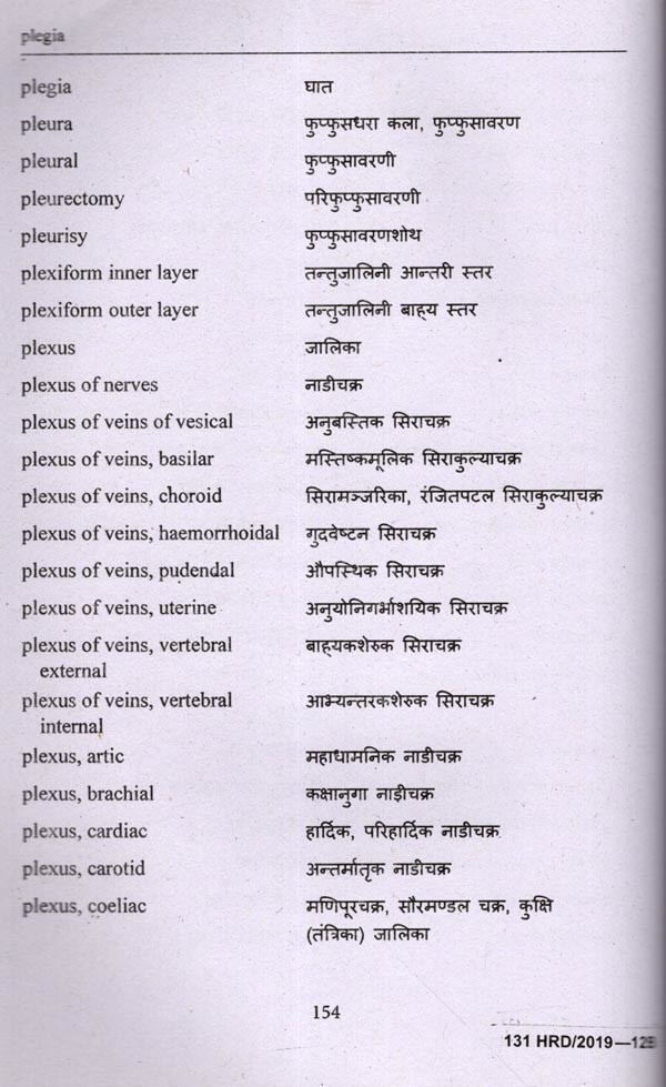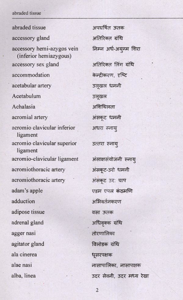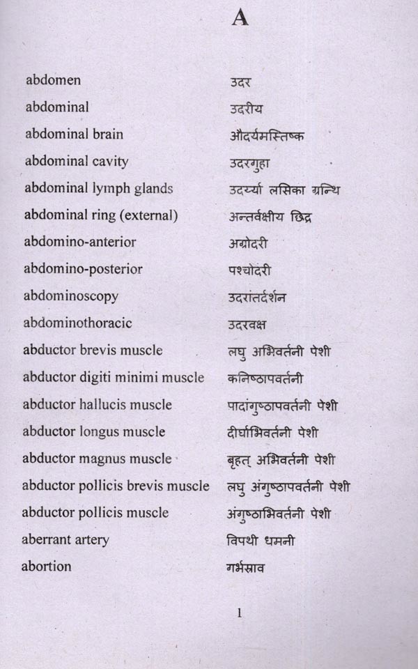 शरीर रचना विज्ञान शब्द-संग्रह: Glossary of Anatomy (English-Hindi)
