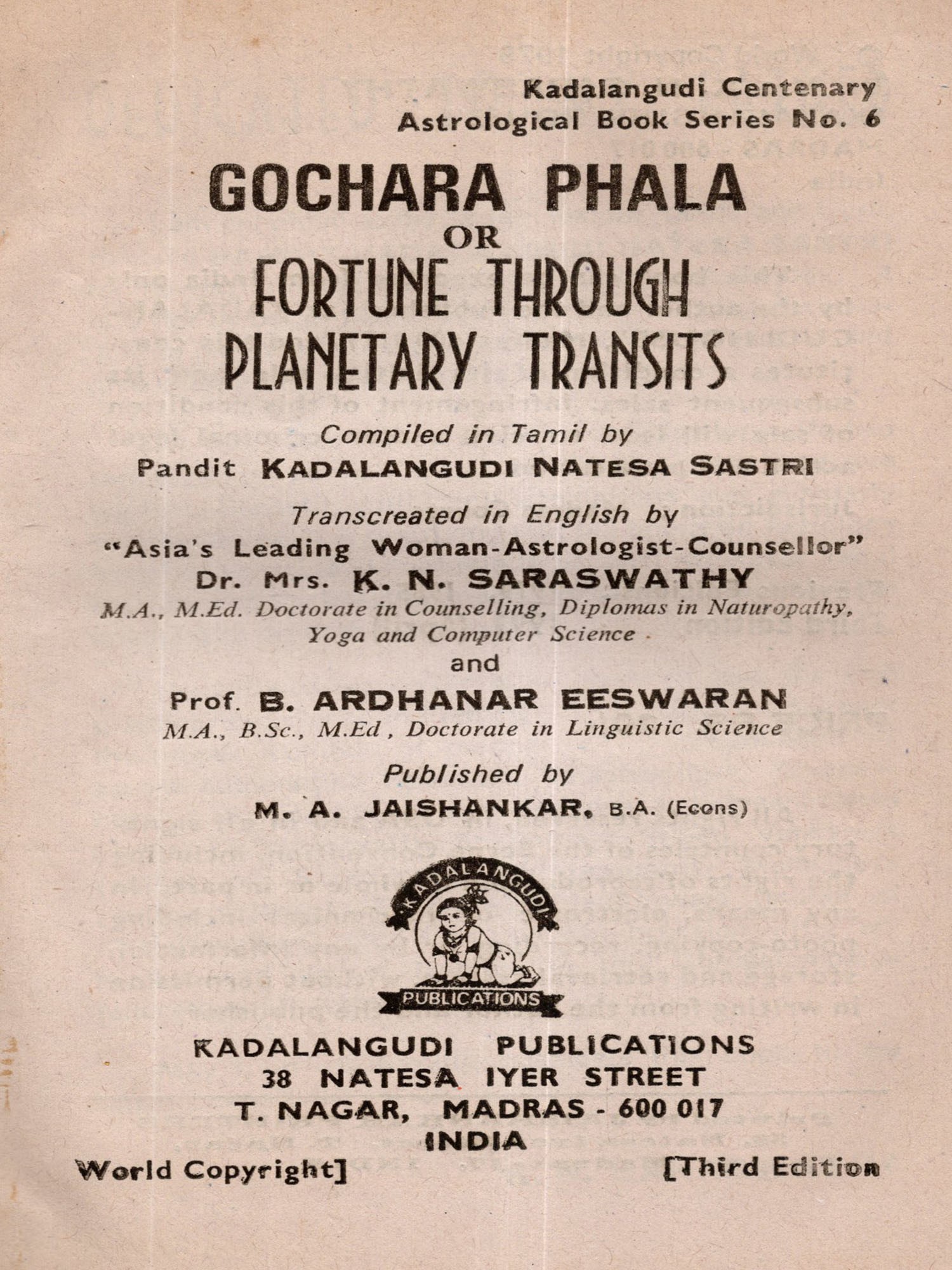 Gochara Phala Or Fortune Through Planetary Transits (An Old and Rare Book)
