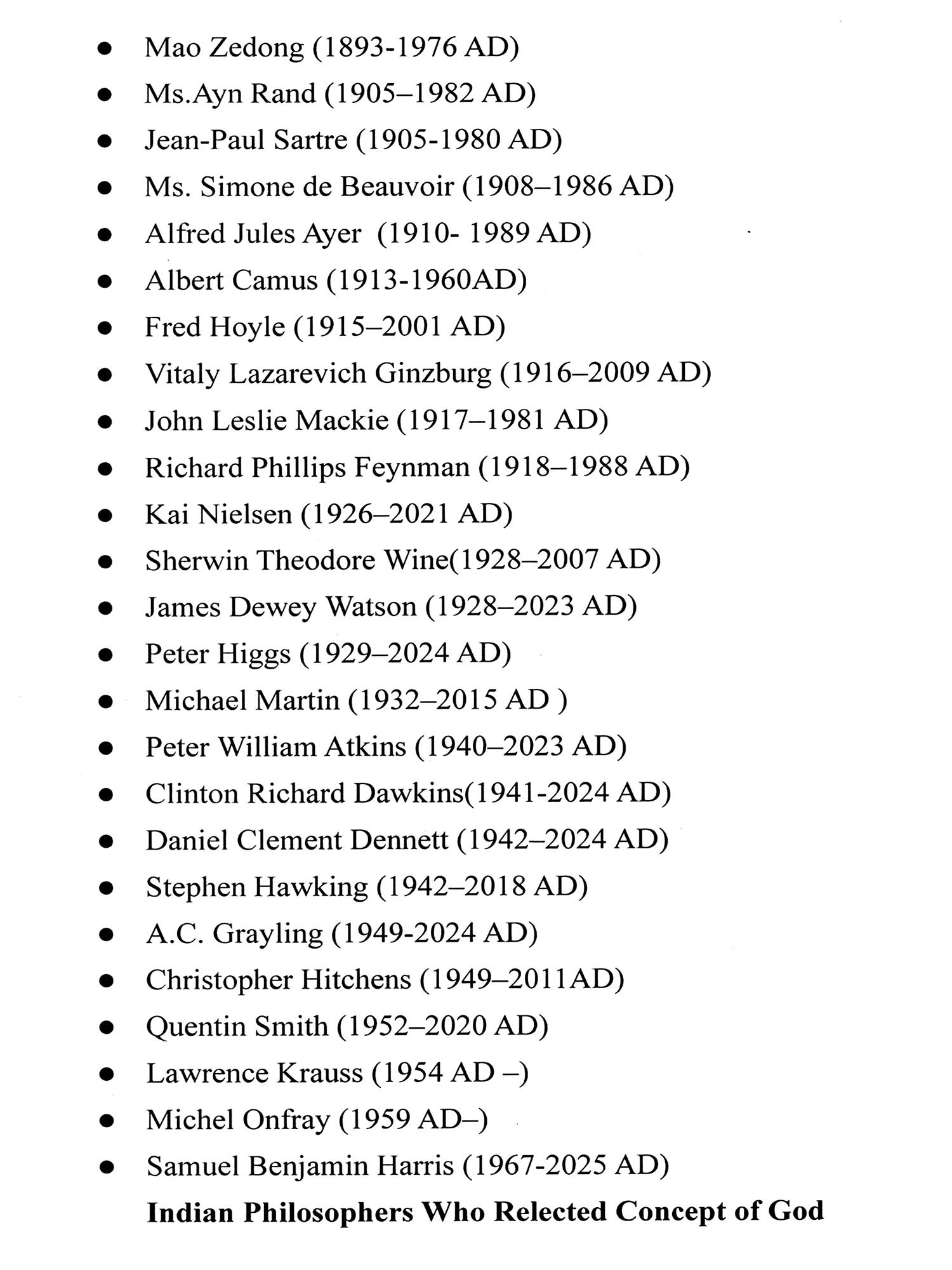 4. Those who rejected the concept of God or existence of God.
