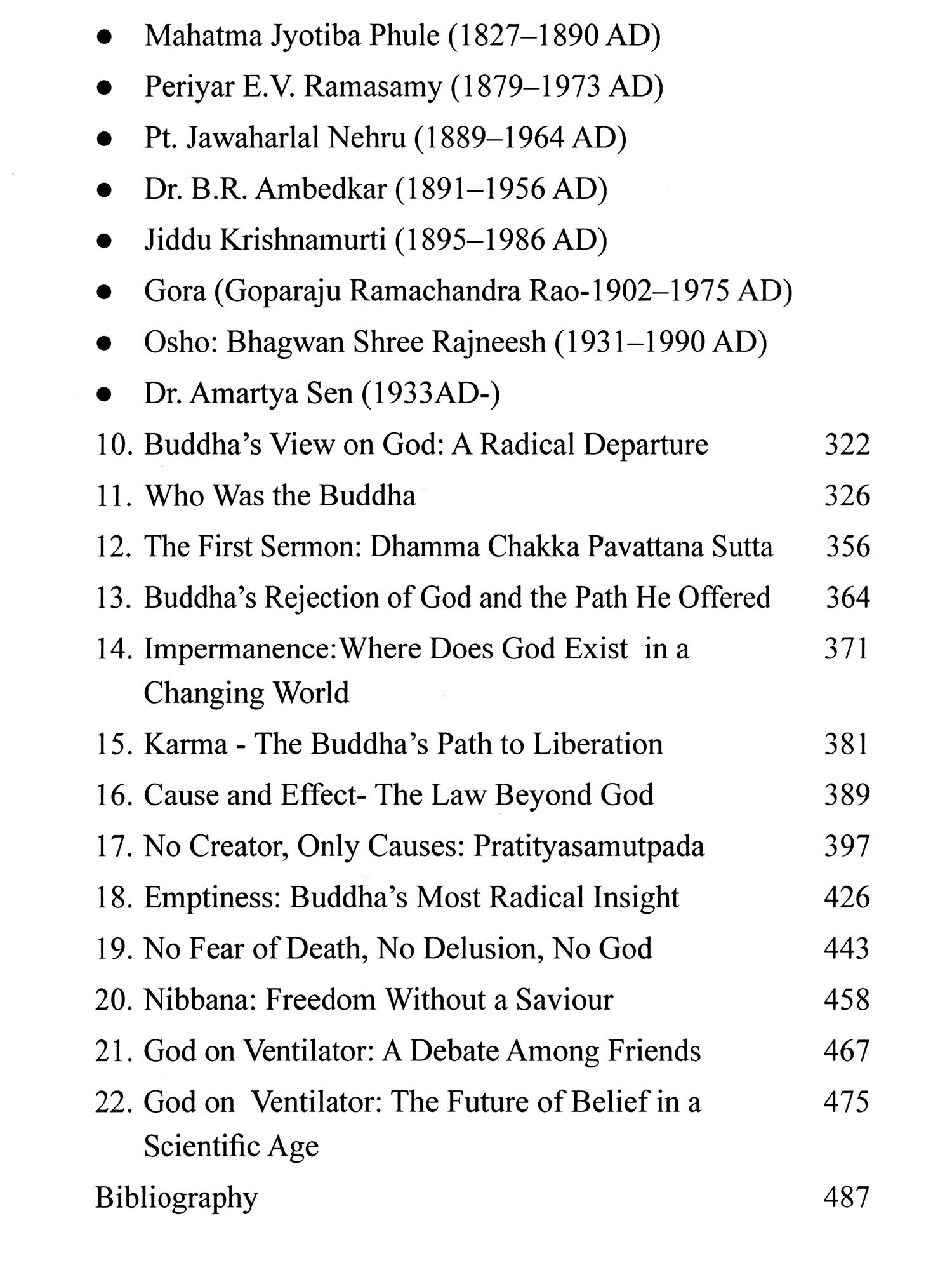 Lord Buddha, as discussed in this work, took a radically different approach. He did not merely remain silent on the existence of God, but he argued that debating whether God exists or not is a futile exercise, as it brings no real benefit to the individual. According to him, a righteous and enlightened society need not rely on a supernatural being. Humanity has the capacity to evolve on its own. Buddha asserted that man is an end in himself, not dependent on external divine forces. His powerful message: "Be a light unto yourself" is the central idea that defines his philosophy.