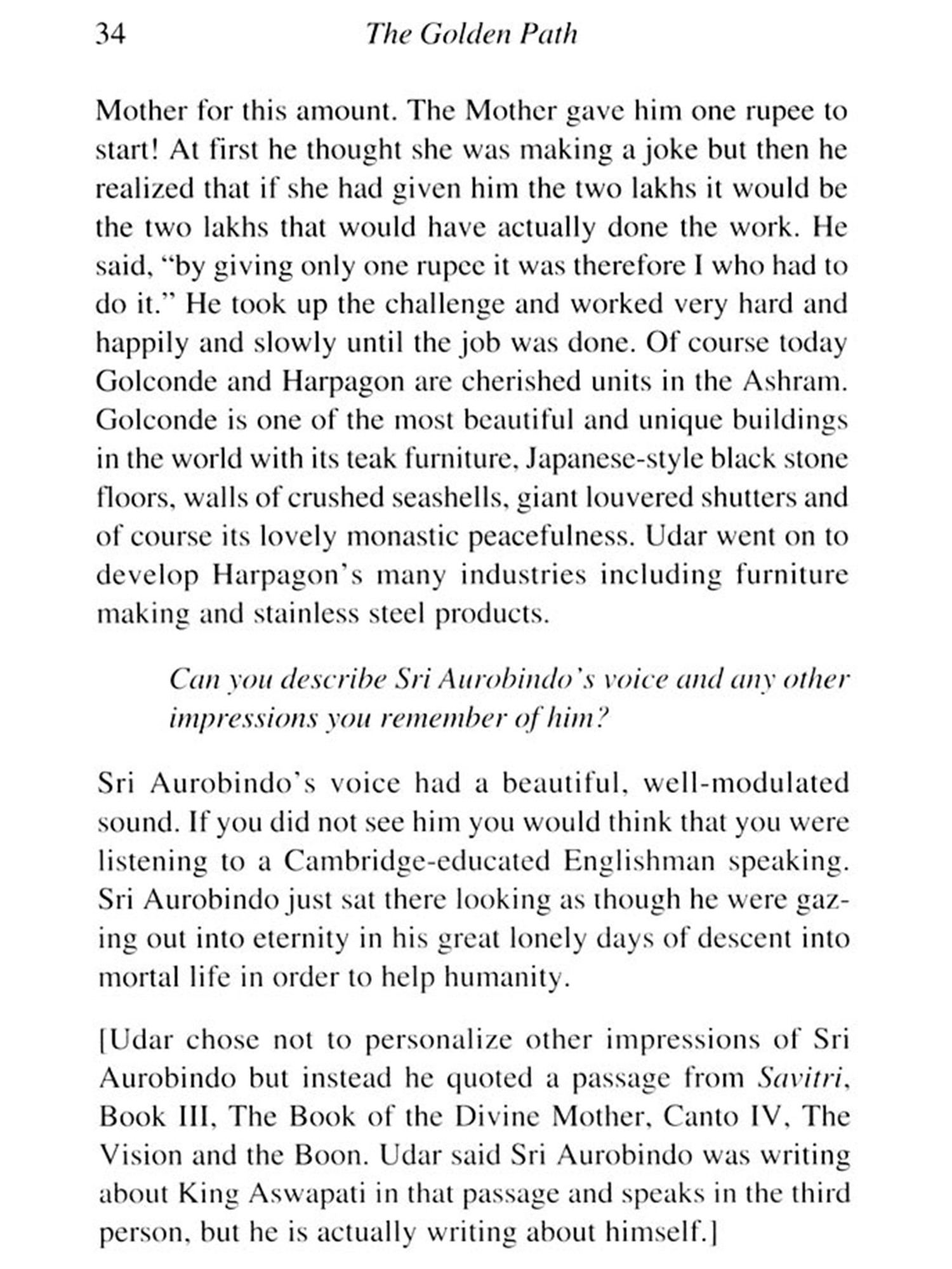 What was it like to live in the physical presence of the greatest open secret and mystery of our times the incarnated presence among human beings of the divine consciousness in double form? What effect did it have on the inner life? What living trace did it leave behind that the dwindling core of direct disciples continues to bear testimony to in their lives? There are the writings, letters and conversations of Sri Aurobindo and the Mother and a great deal has been written by disciples in the form of reminiscences, all of which are invaluable help to seekers of the Integral Yoga today.