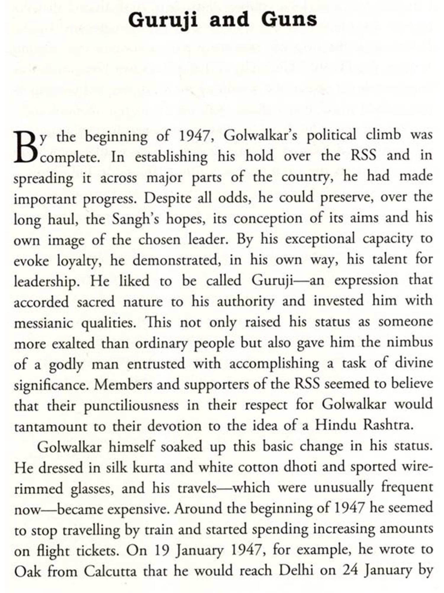 With his book as the guiding force, he restructured the RSS to an unprecedented degree and packed it with highly passionate Hindu radicals given to strict subordination, discipline and devotion.