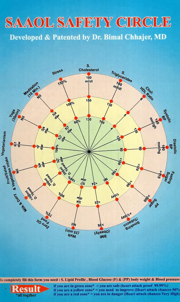 Dr. Bimal Chhajer MBBS, MD, Heart Care & Lifestyle Expert, is one of the pioneers and one of the most popular names in the field of Non Invasive Cardiology in India and abroad. He is the founder of Saaol (Science and Art of Living) Heart Center - the largest of the non-invasive clinics all over the world. He completed his MBBS from Kolkata in 1986, MD from Lucknow and worked in the All India Institute of Medical Sciences (AIIMS), New Delhi for six years. In 1995, he resigned from the AIIMS as a faculty member and started Saaol.