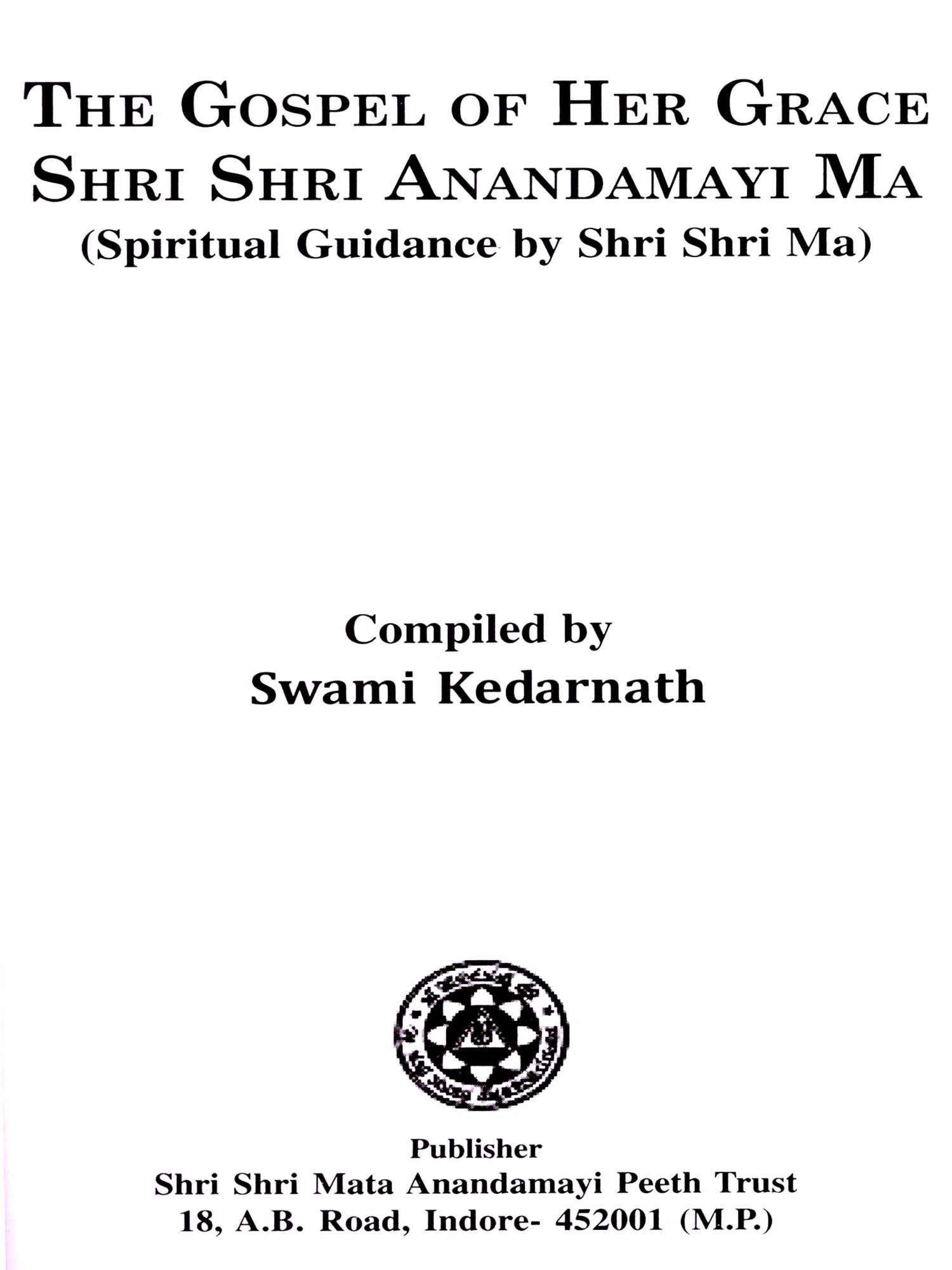 I feel immense joy in compiling, writing and editing this book entitled 'The Gospel of Her Grace Shri Shri Anandamayi Ma". Teachings or the words of Shri Anandamayi Ma are no less then a Revelation, hence, 'The Gospel'. For this volume, material has been compiled from approximately 160 issues of Anandavarta, 20 parts of 'Shri Shri Ma Anandamayi' authored by Shri Gurupriyadevi, 8 parts of 'Shri Shri Ma Anandamayi Prasanga' written by Shri Amulya Kumar Dattagupta, and various other small and large sources.