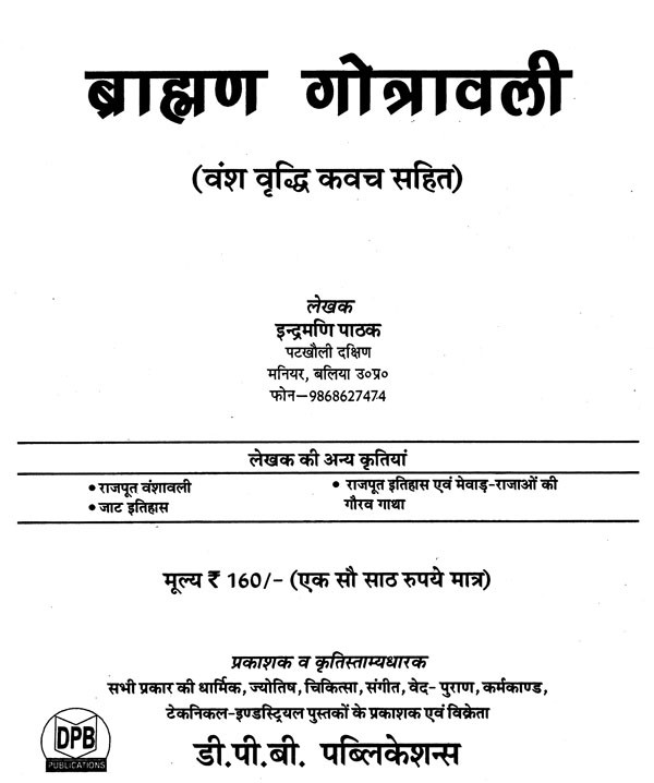 Gotra is a unit of classification, usually for people tracing their lineage in an unbroken male line. This Gotravali of Brahmins by INDRAMANI PATHAK is an encyclopedic commentary on history of the Brahmins, their duties, regional distributions and differentiations - put in place to educate the community about their roots.