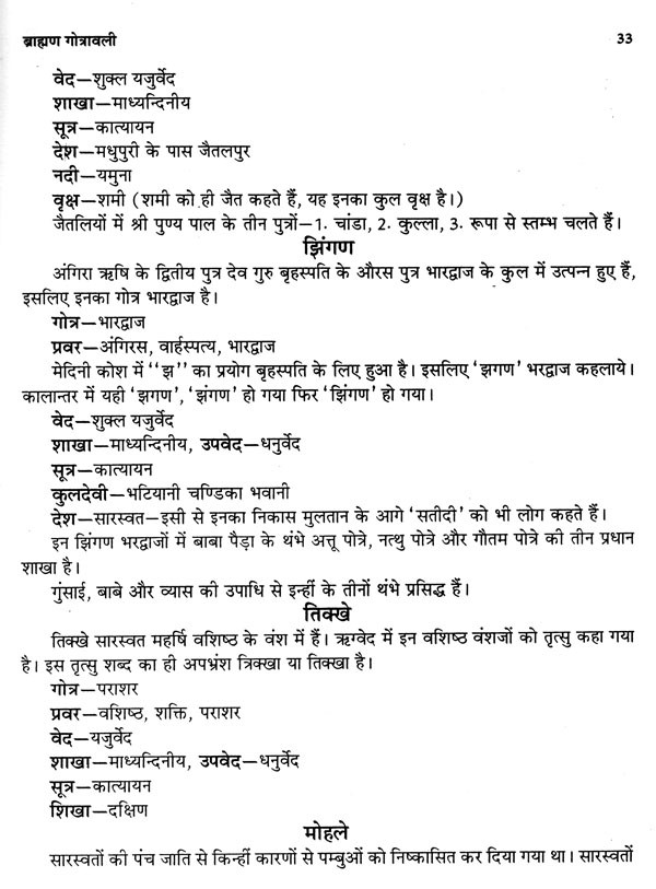 It also gives detailed information about the origin of each gotra of the Brahmin caste and how they came into being, the geographical locations associated with them, the rules that are to be followed concerning each gotra, the legends associated with them, etc.