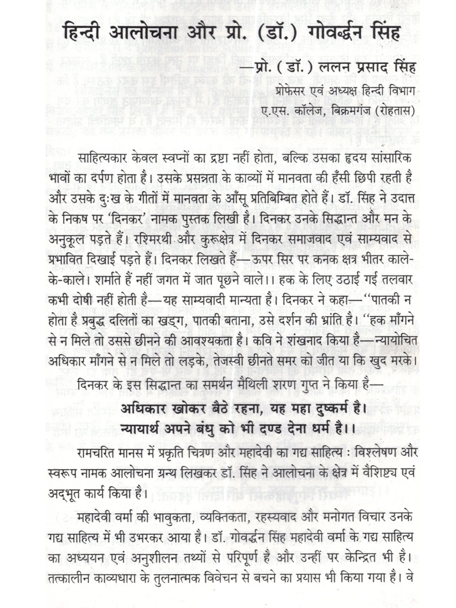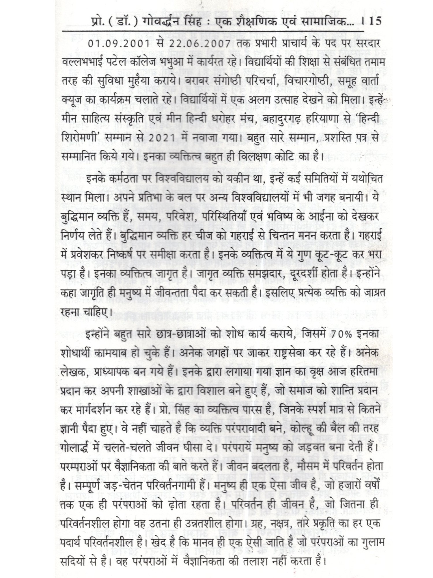 गोवर्द्धन सिंह का बहुआयामी व्यक्तित्व: Govardhan Singh Ka Bahuaayami Vyaktitva