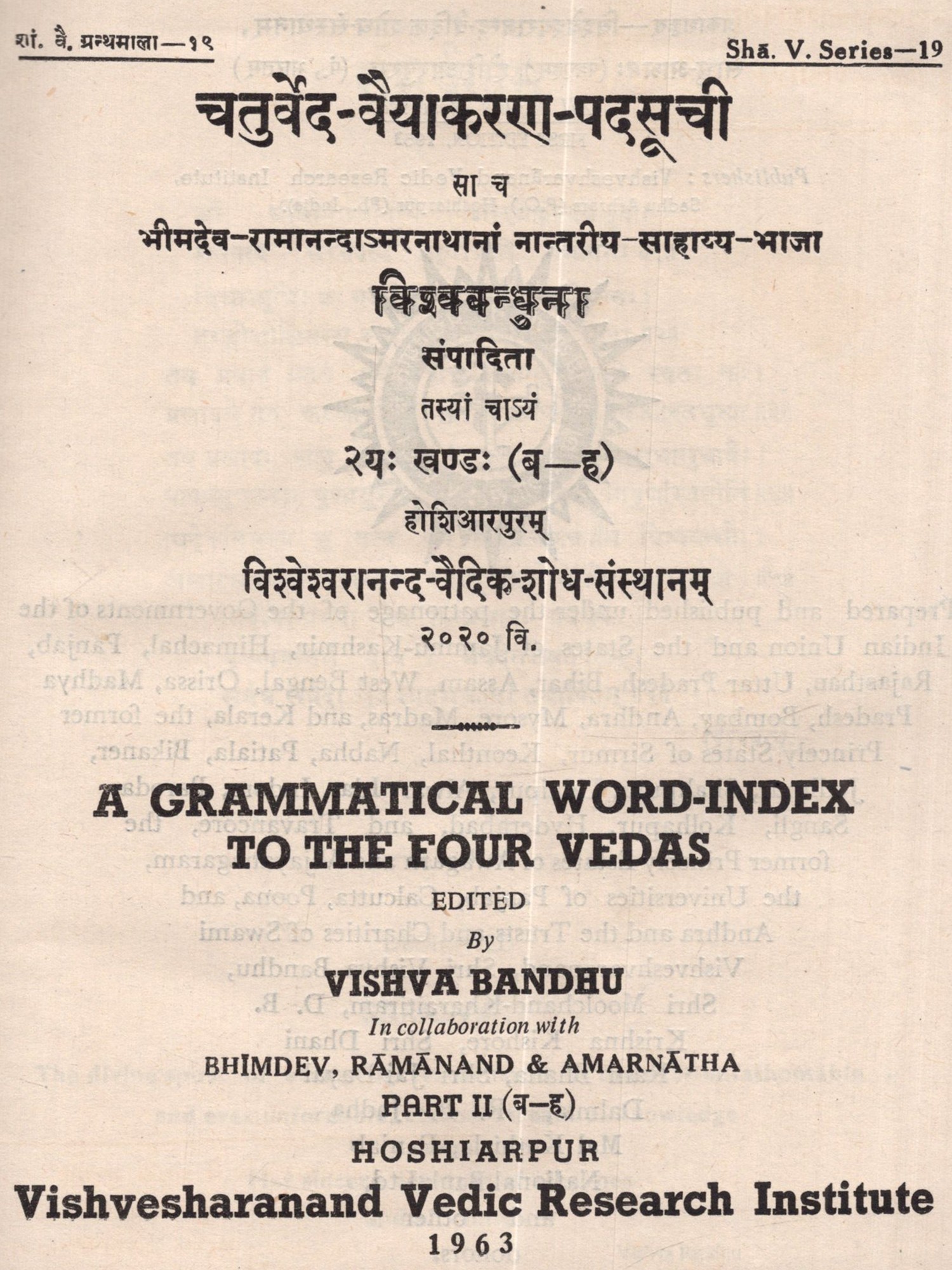 Publisher: Vishveshvaranand Vedic Research Institute, Hoshiarpur