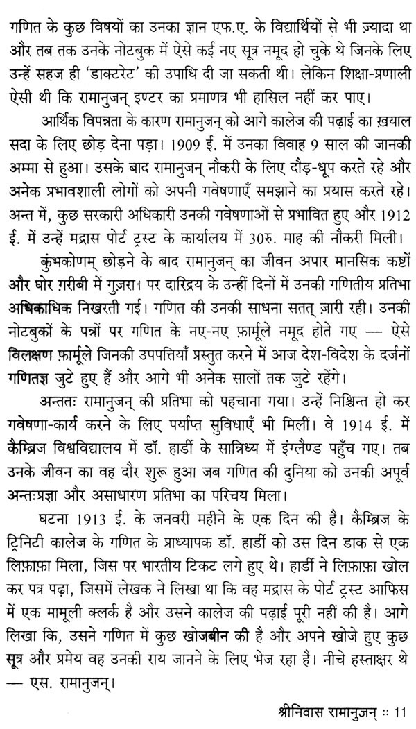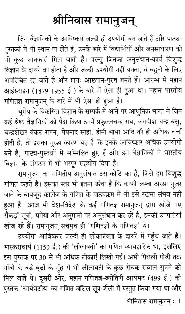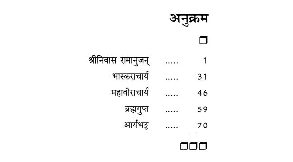 भारत ने दुनिया के महान गणितज्ञों को जन्म दिया है जिनका आज भी पूरी दुनिया लोहा मानती है। प्रस्तुत पुस्तक में इन्हीं गणितज्ञों के बारे में जानकारी दी गयी है जो आपको इनके बारे में काफी जानकारी प्रदान करते हुए आपकी जिज्ञासा को शांत करेगी।