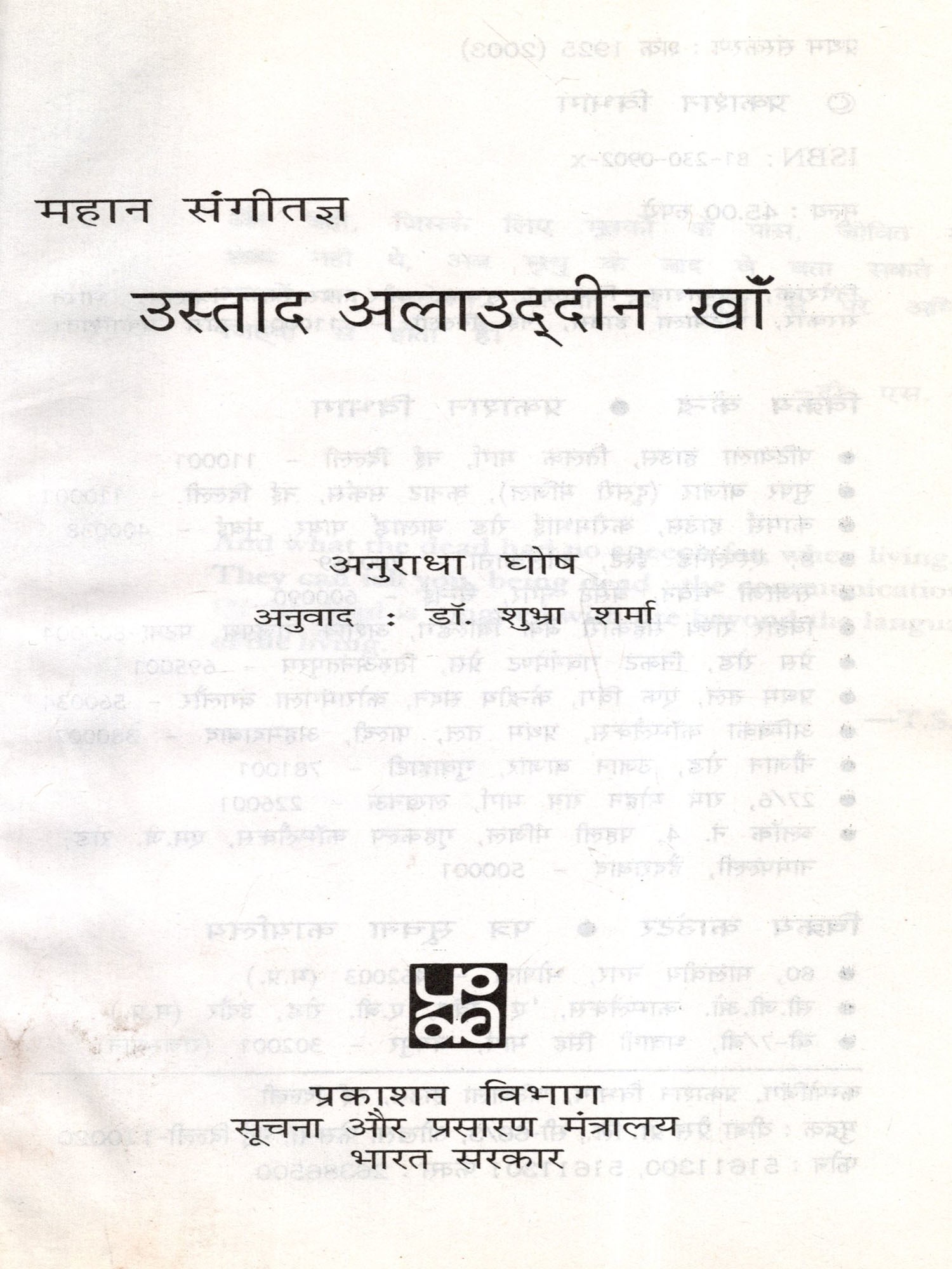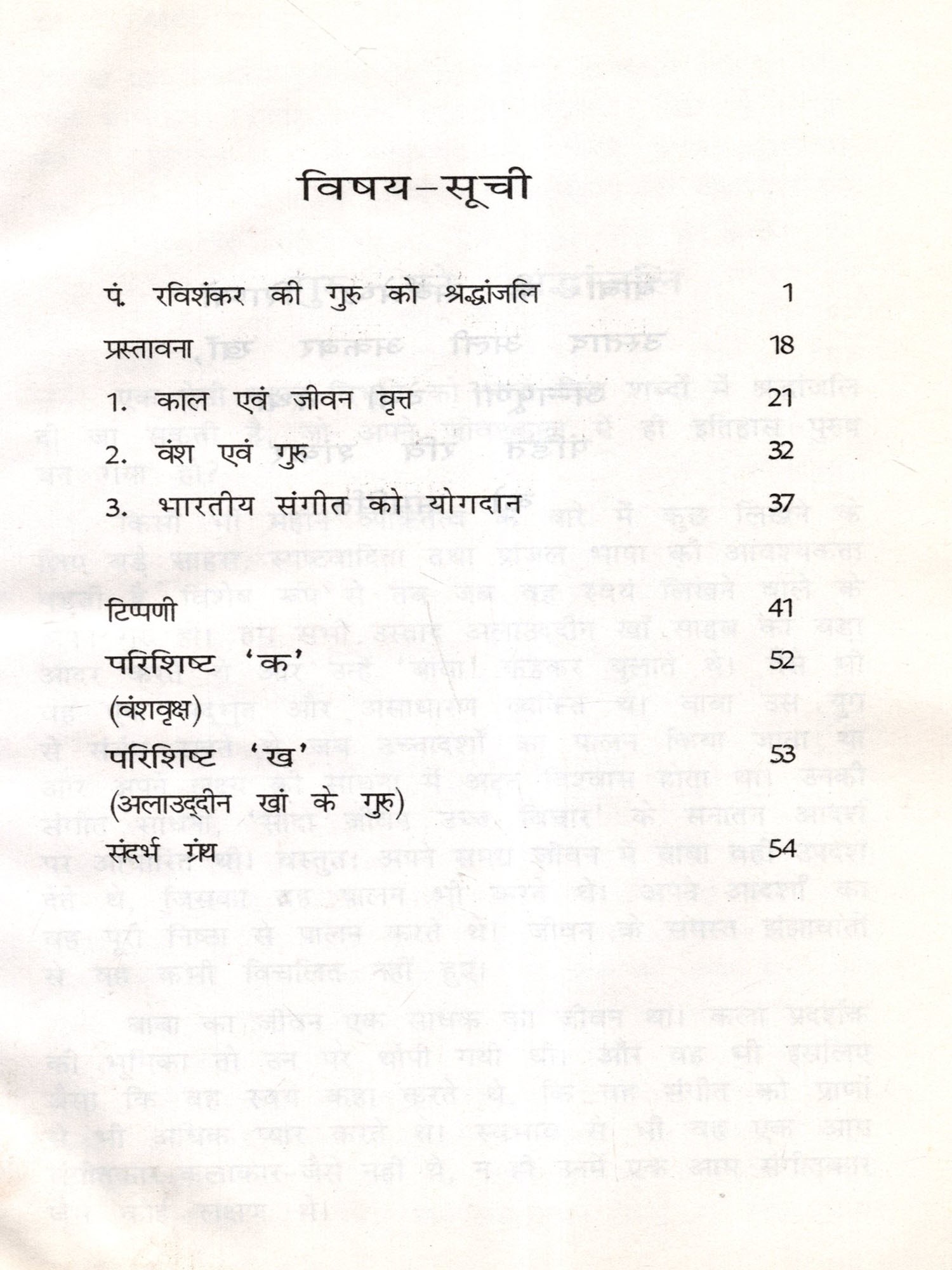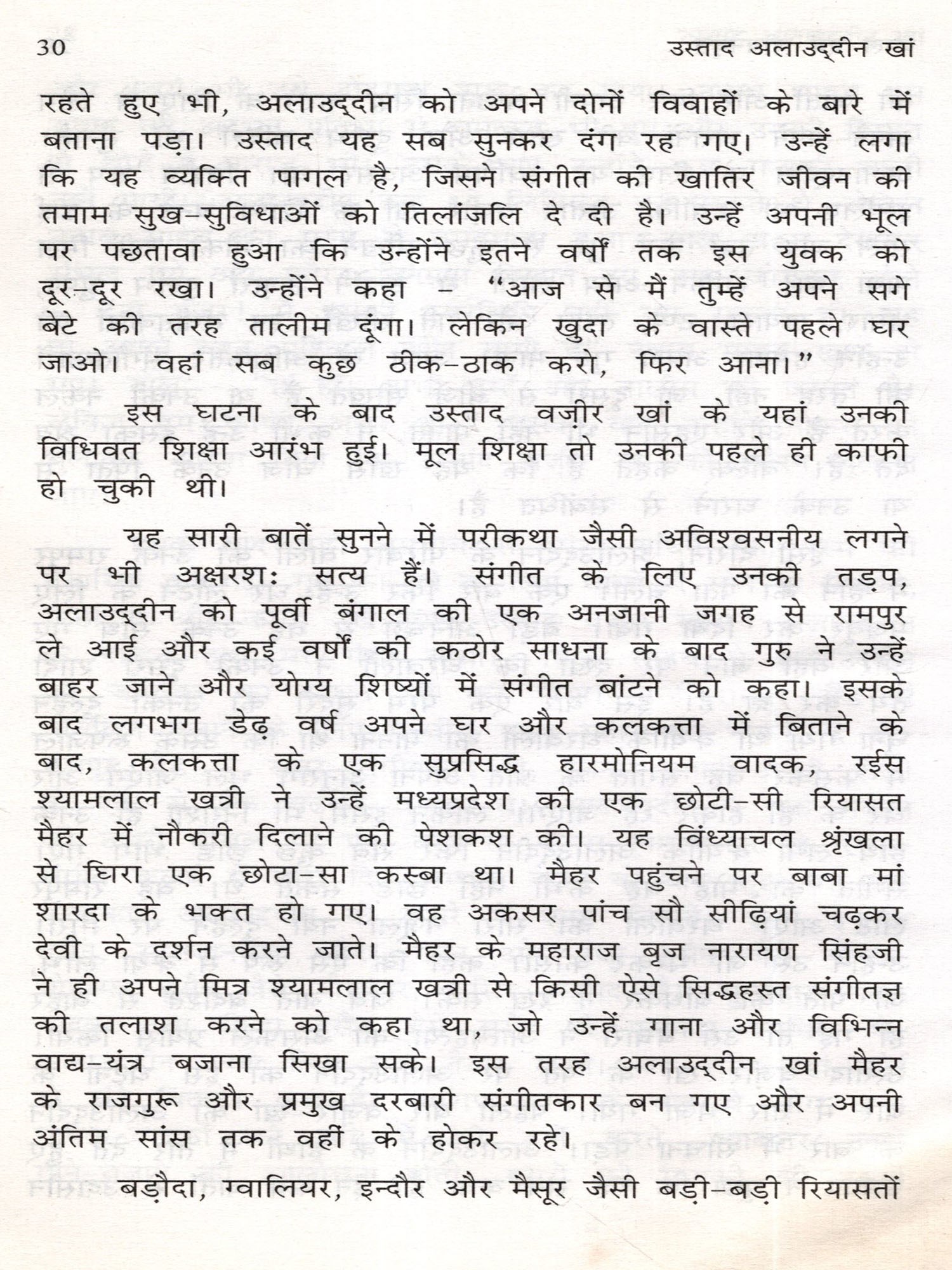 मुझे आचार्य अलाउद्दीन खां के योग्य पुत्र और सरोद के सर्वश्रेष्ठ कलाकार, उस्ताद अली अकबर खां साहेब से मिलने का भी सौभाग्य प्राप्त हुआ। उन्होंने और पंडित रविशंकर ने भारतीय वाद्य परंपरा को विश्वभर में प्रतिष्ठा दिलाई। मैं अली अकबर साहेब के स्नेह, परामर्श और इस पुस्तक को पूरा करने में सहायता के लिए, उनकी आभारी हूं।