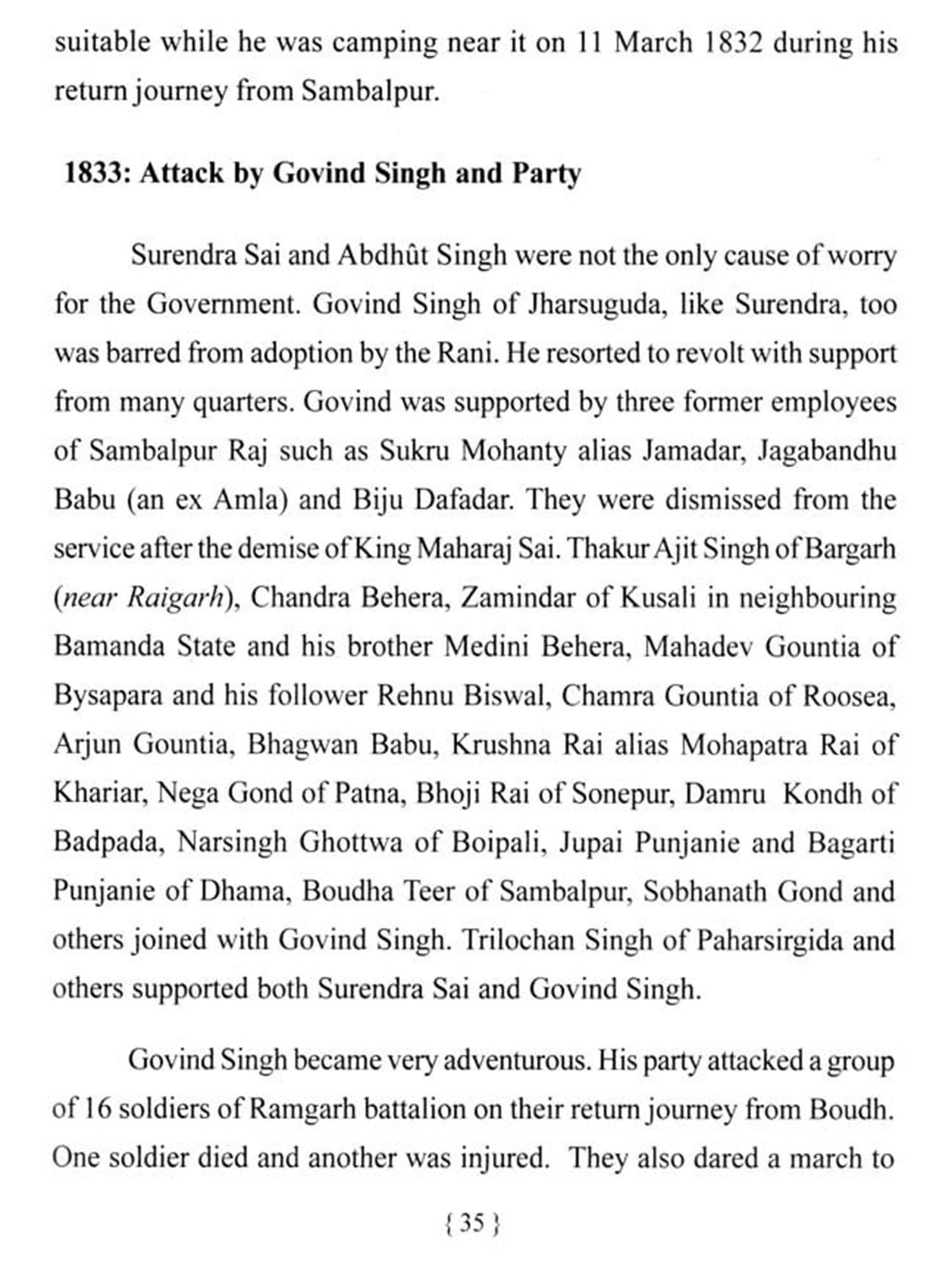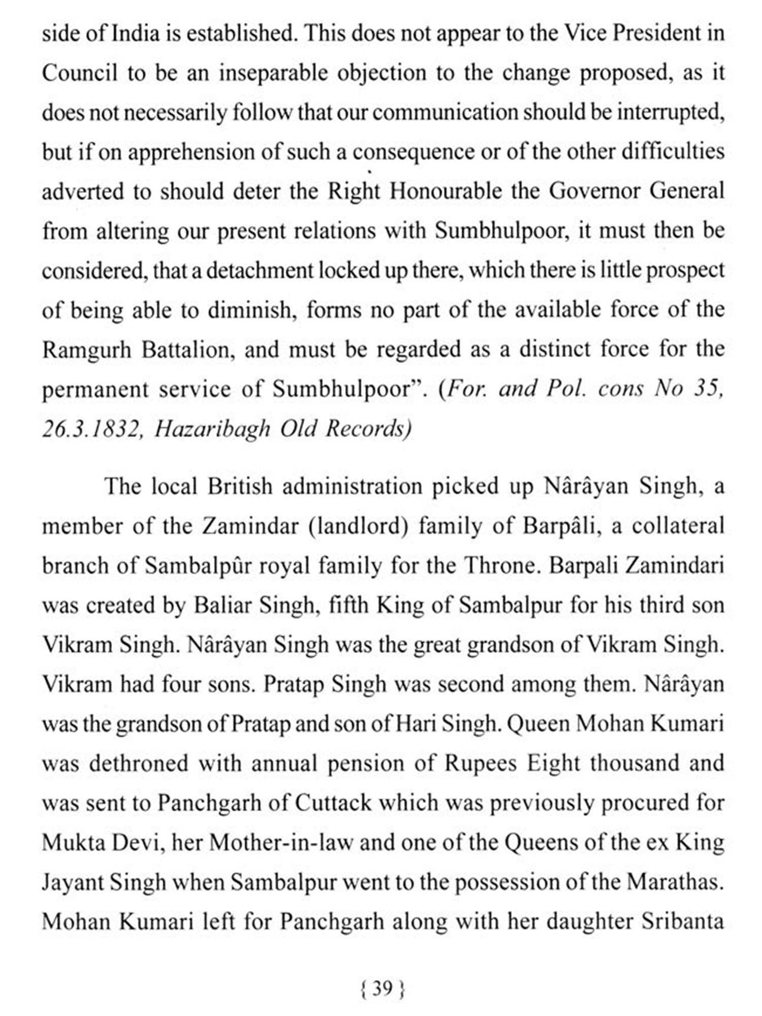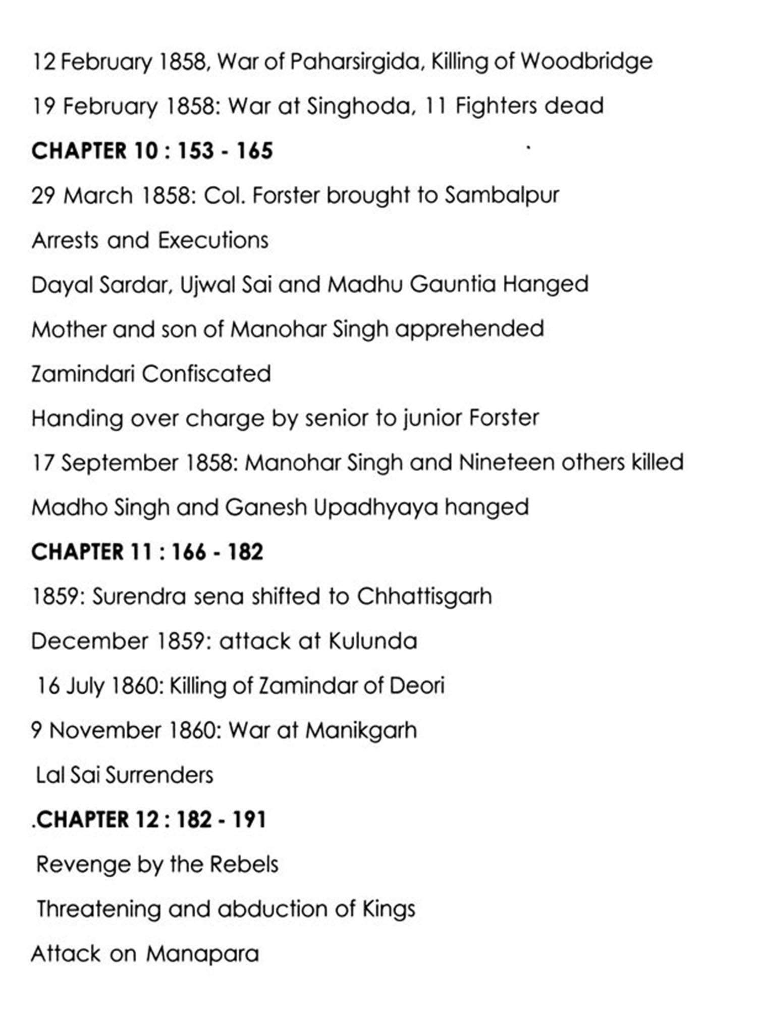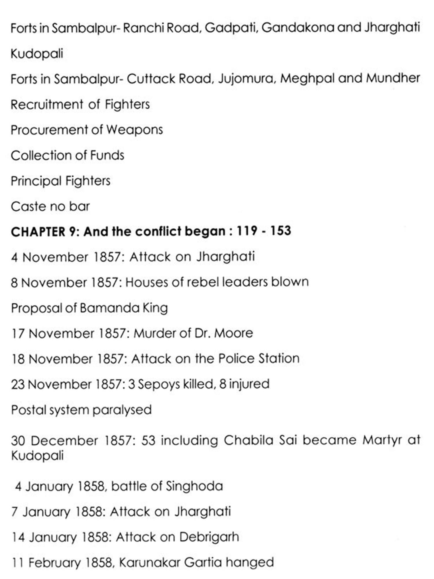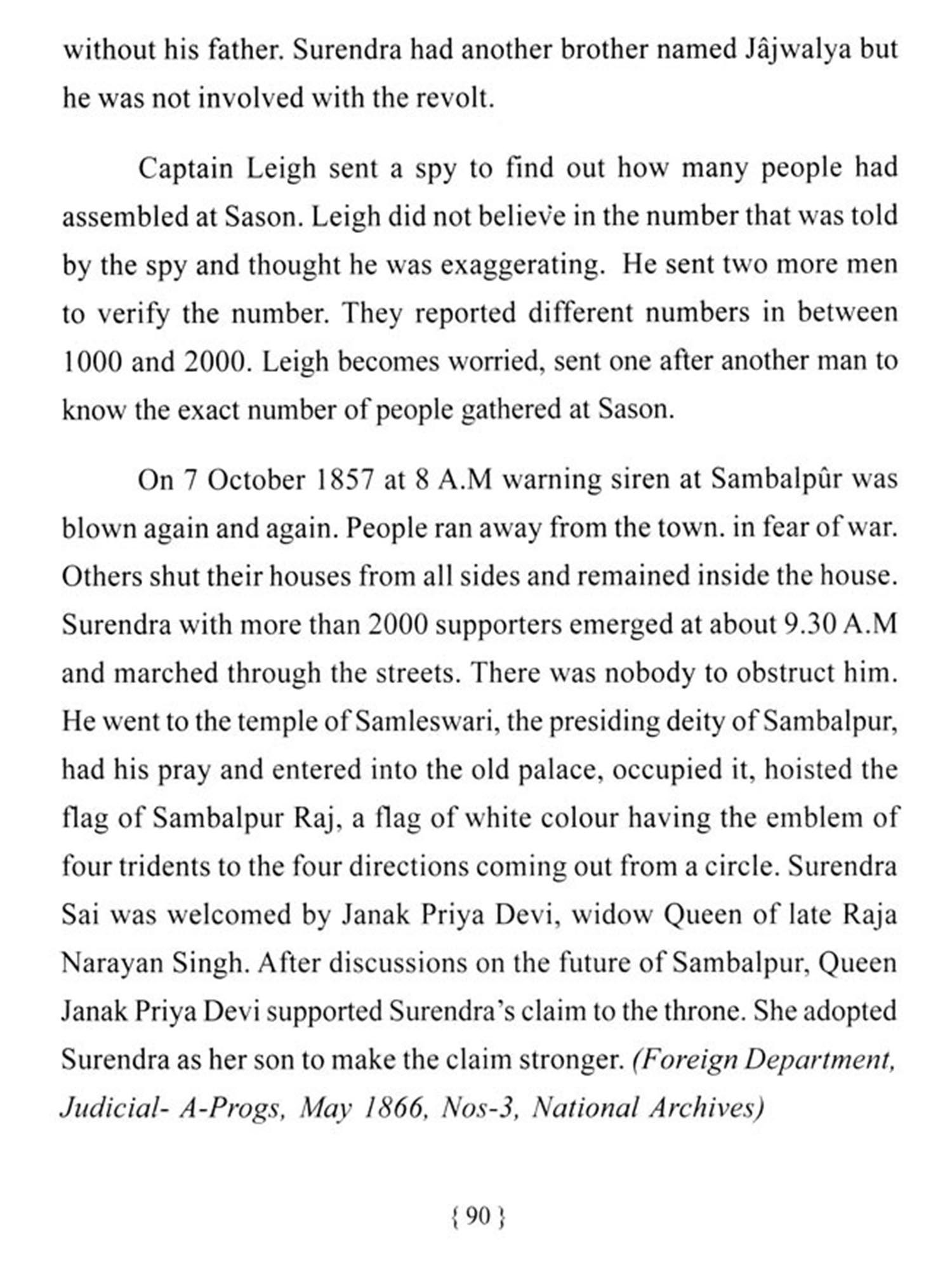 Sambalpur, then a hinterland British district of Central-Eastern India jumped into the fray of the Rebellion. The scenario of Sambalpur was quite different. Agitation against the British started at Sambalpur in 1827 which continued at a stretch up to 1840; took a long break of 17 years as Veer Surendra Sai, the leader and his brother Udanta were confined in Hazaribagh jail till 1857. They were released when soldiers of two platoons of Danapur Force, known as Burdwan ka naya palton turned rebels and broke open the jail gate. Being released by the rebels Surendra and Udanta returned to Sambalpur and planned to revive the Rebellion in a big scale. When the mutineer Sepoys and the soldiers of different Kings were involved elsewhere, it was a fight by non-regular soldiers at Sambalpur. Ordinary fighters were recruited. Majority of the rebels belonged to schedule tribe and schedule caste, specifically of Ganda, Gond and Binjhal tribes. But there were Brahmins too. Most of the Zamindars and many village heads or landlords of the erstwhile State of Sambalpur joined sacrificing easy, comfortable family life, preferred roaming in the jungle, living a life of hardship. After the mutiny was crushed elsewhere in the country the British brought many experienced commandants, but they could not succeed in sup-pressing it in Sambalpur because of the geographical setup, war strategy of Surendra Sai and Guerrilla tactics of war. We have accounts of death of 92 rebels in different wars with the colonial force in Sambalpur Rebellion but the number was higher. Many principal rebel leaders were apprehended and hanged. These deaths and hangings had no impact on the rebel force as they continued with same tempo. The consistent rebellion for longer period with high tempo has earned the name "Ulgulan", in Sambalpuri language.