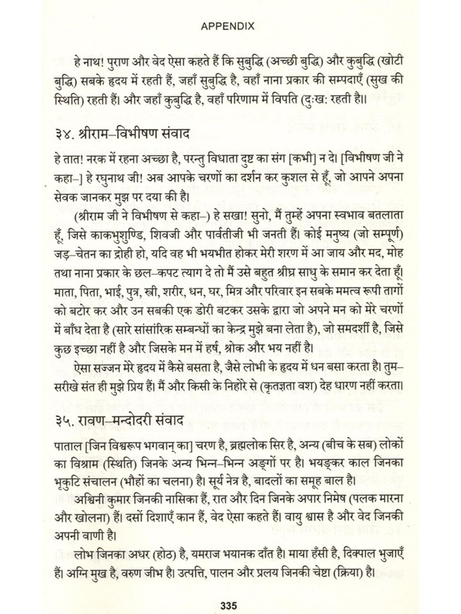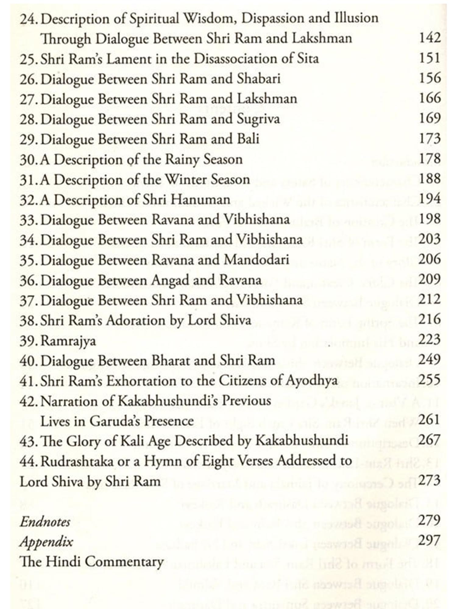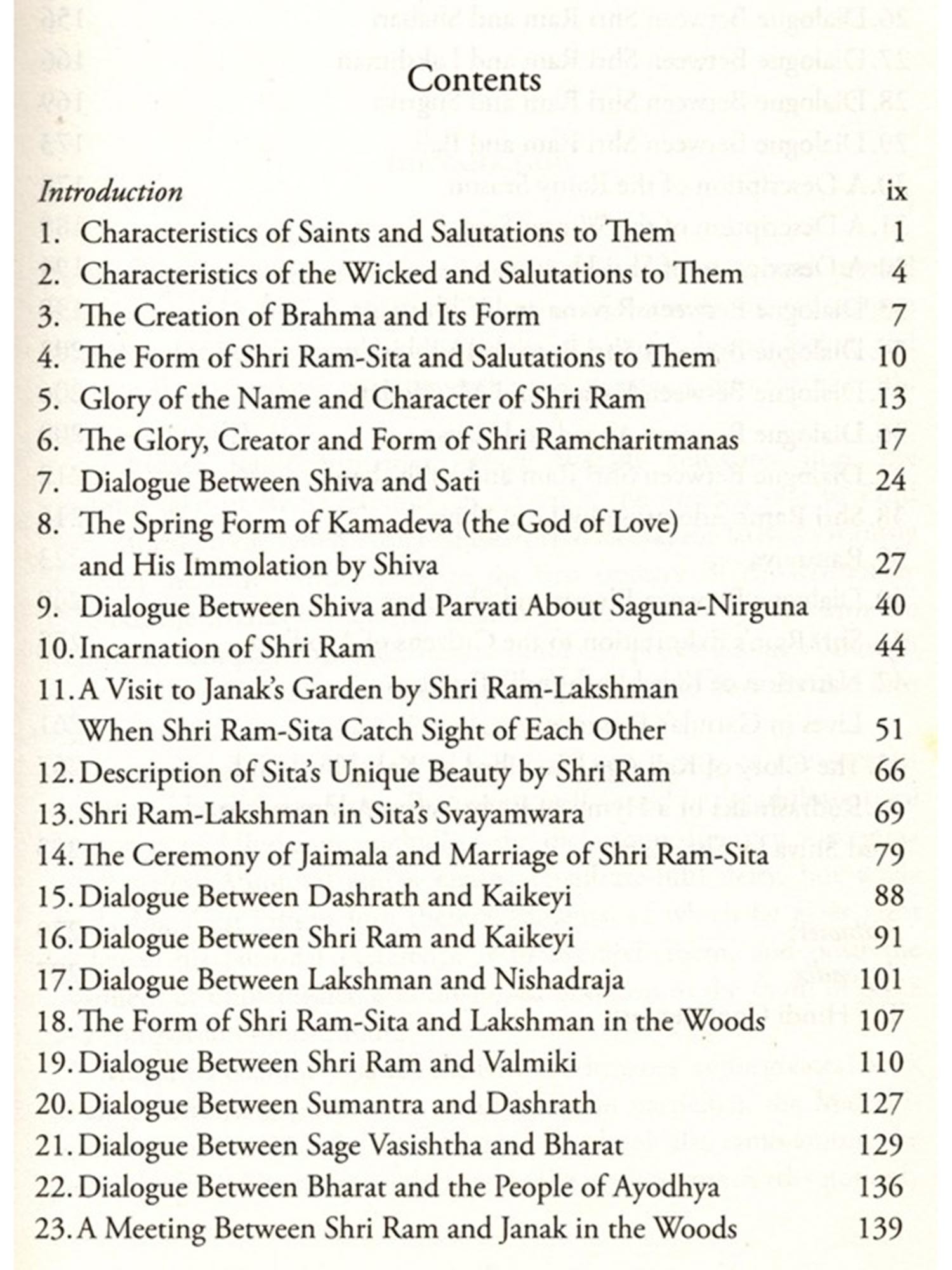 Goswami Tulsidas's work is a lyrical outpouring of the greatest devotion-bhakti-to Ram. The poet is well-versed in the philosophical intricacies of Hinduism, including the dichotomy between a nirguna (attributeless Absolute) and a saguna (attribute-full) deity, but while displaying deep insight into these arguments, of which he gives great evidence, his personal preference is to overarch them, and posit the argument of unblemished and unalloyed devotion to the fount of grace and compassion-Lord Ram.