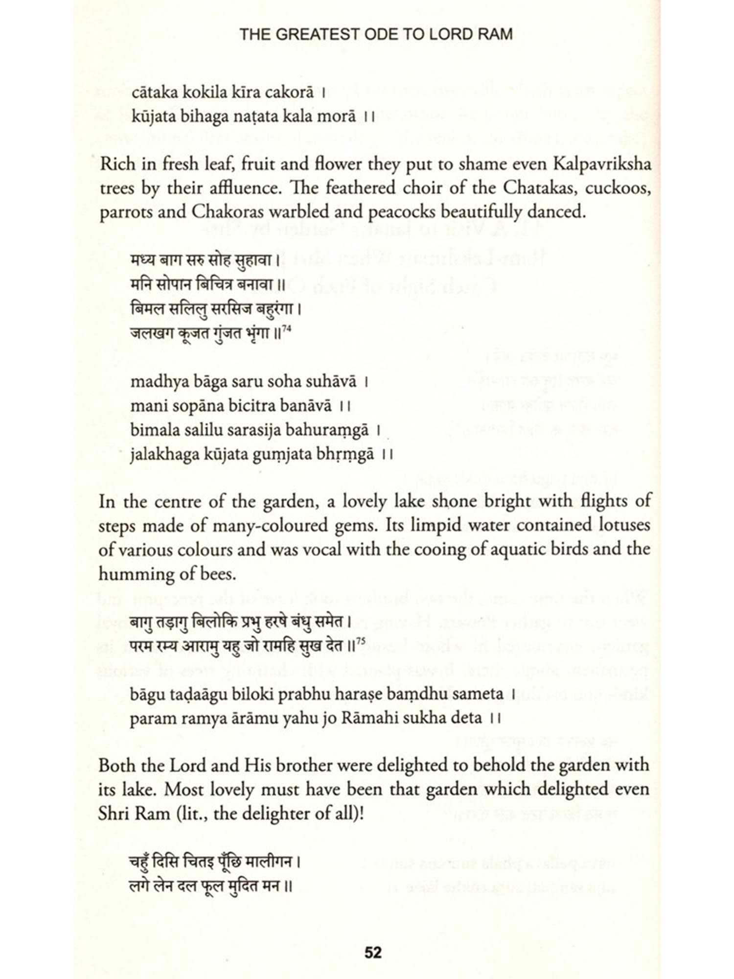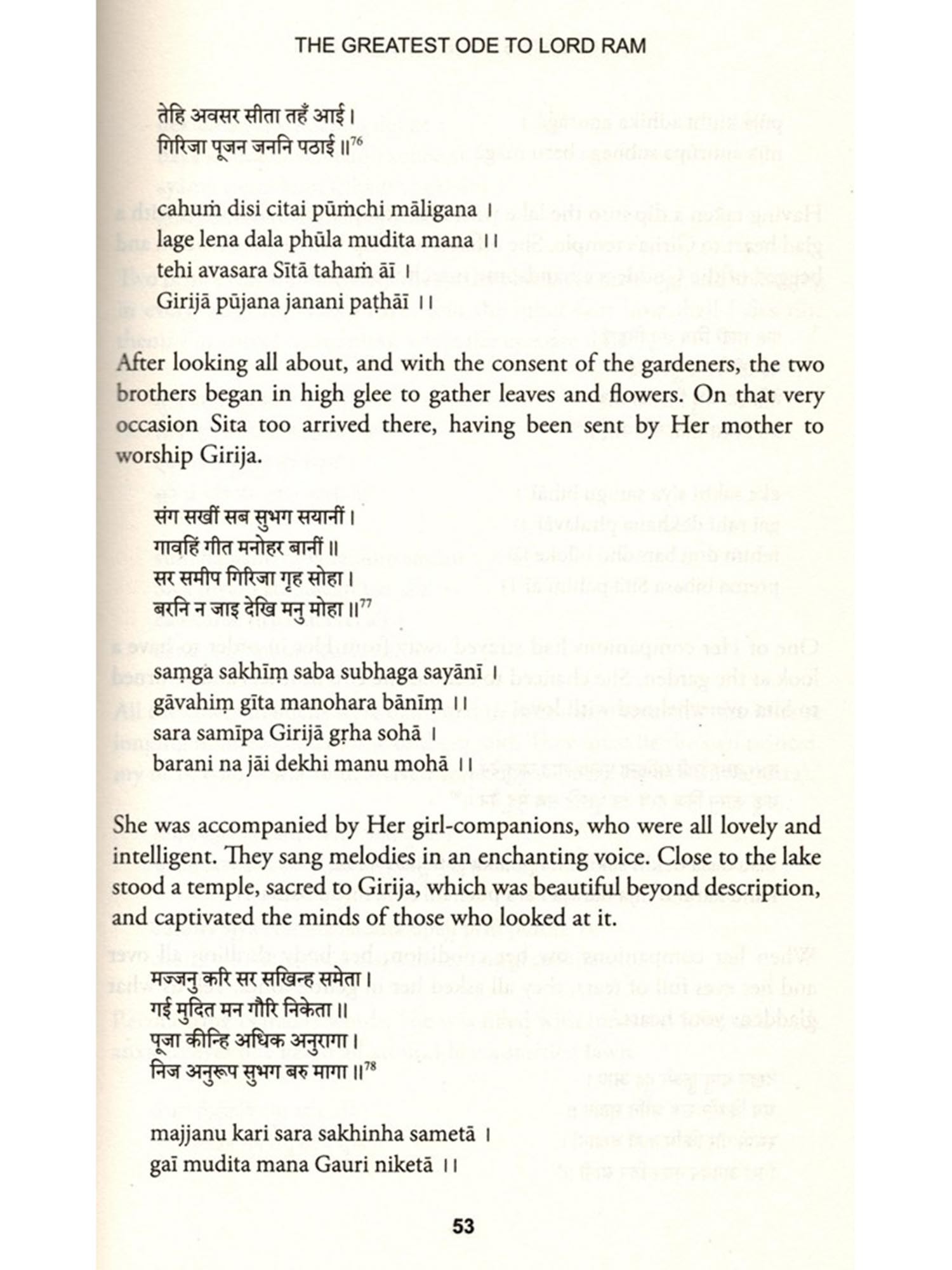The Greatest Ode to Lord Ram is a selection of some of the most evocative stanzas from the original text, accompanied by succinct commentaries. While centring the philosophical aspect the immutability of the soul over the merely corporeal; the transience of worldly pleasures; the placing of wisdom above knowledge-it allows us to see the devoted son, the loving sibling, the committed lover, the ideal ruler and also the human, almost bereft of divinity. Ram is a god and a man; he is comprehensible.