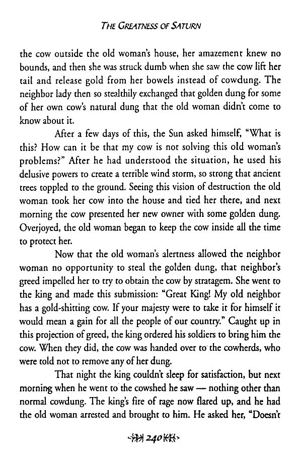In The Greatness of Saturn, one directly experiences the healing power of the world's great myths. The telling of mythic stories has always been a powerful form of therapy, bringing healing to people facing adversity. The Greatness of Saturn is such a therapeutic myth, told and retold through many centuries. Taken from the East Indian Vedic tradition, it honors the planet Saturn, who personifies time, limitation, loss, and all forms of adversity.