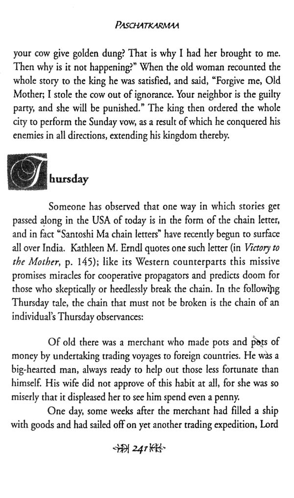 My translation is taken from the Gujarati version of the Shani Mahatmya that was written by Pranjivan Harihar Shastri and published in the 1950s in Bombay by Natvarlal I. Desai. Though this version is now out of print, and the publisher has closed down, a Marathi rendition that is nearly identical, published by Jaya Hind Prakashan of Bombay in 1990, remains freely available. The rendering is mine alone, with abundant translation assistance from Miss Roshni Panday, and commentary assistance from several people who read pieces of text, including Margaret Mahan, Rachel Meyer, and Claudia Welch. I have followed the text almost exactly, less a few anachronisms that have been excised and a few untranslatable puns that were regrettably eliminated. The English word 'pundit' has been used as an admittedly imperfect equivalent for the Sanskrit word pandita, from which 'pundit is derived, even though pandita carries a far broader sense of both erudition and intellectual rectitude than does 'pundit.'