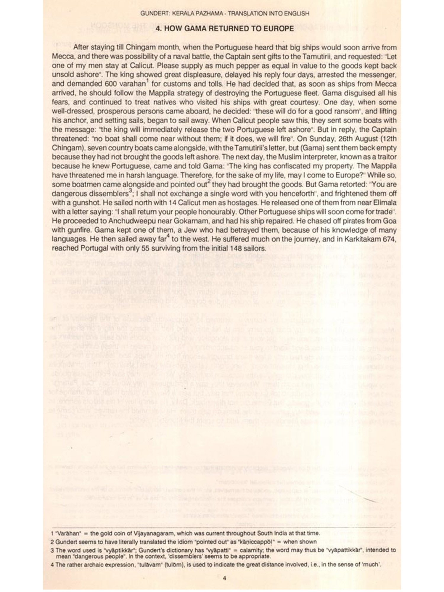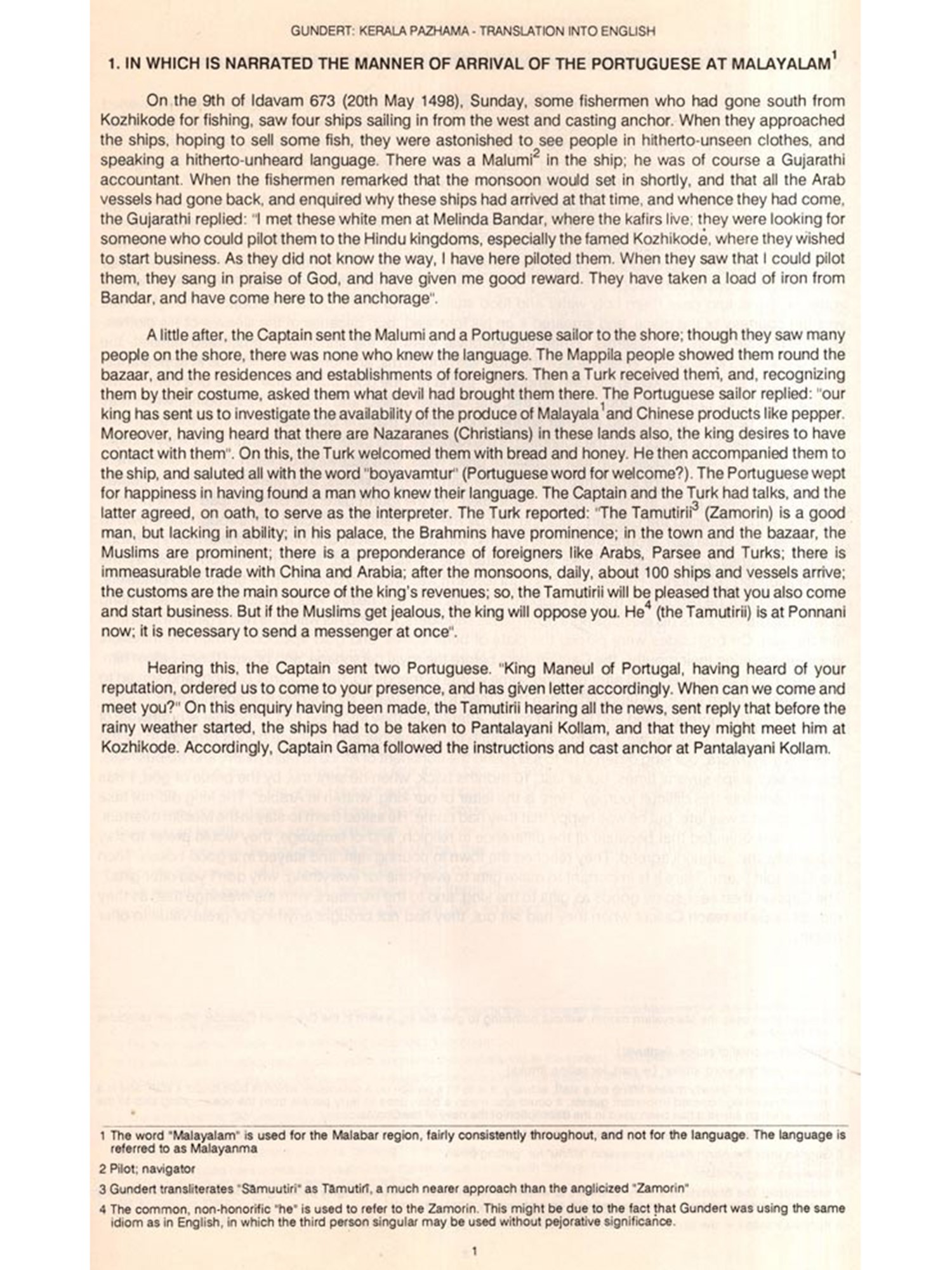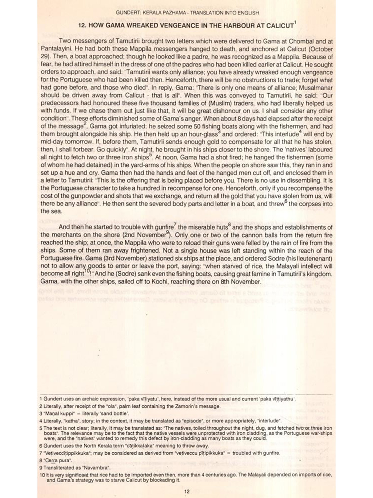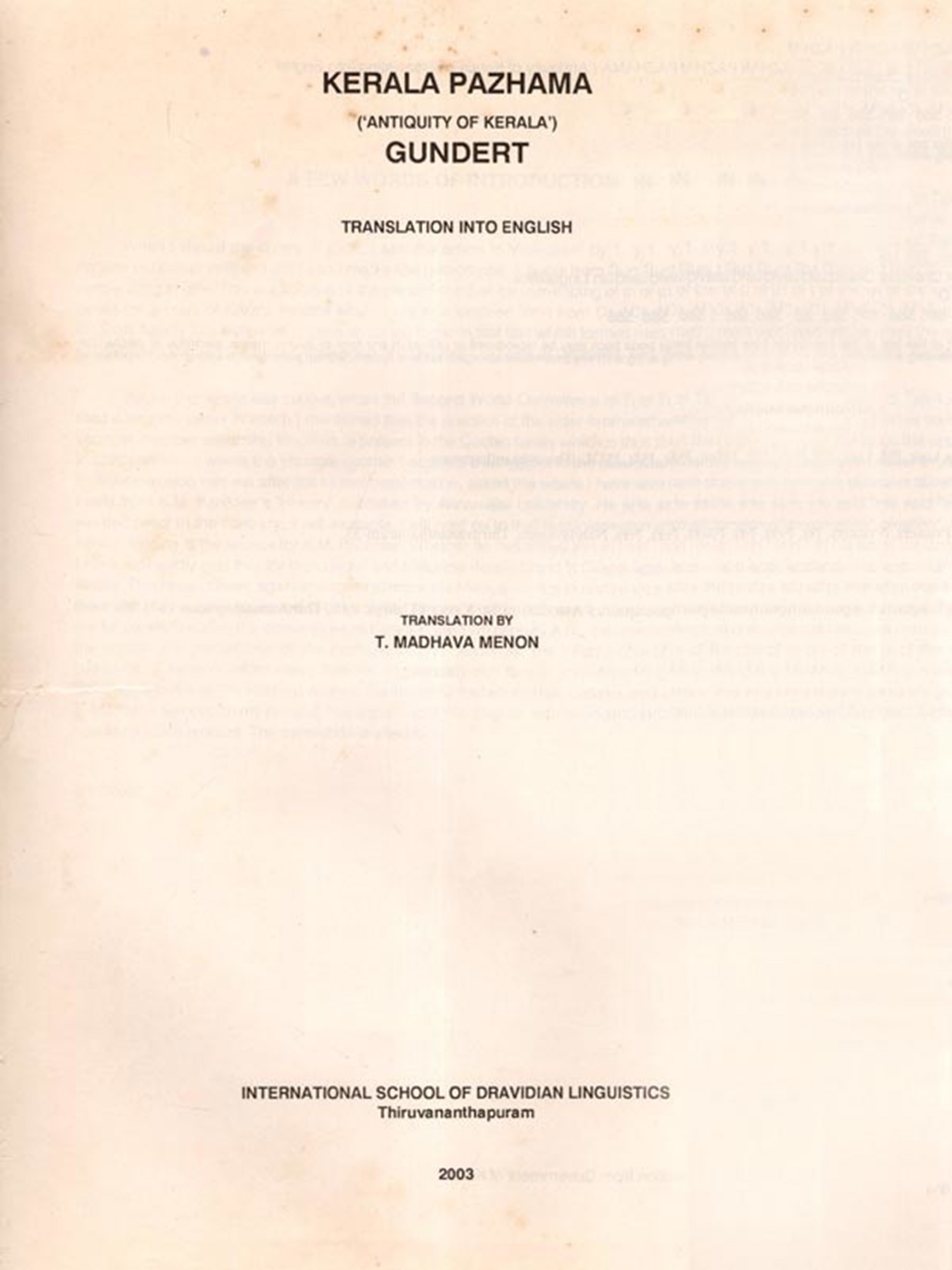 Before that in the late 1960-s, when the Second World Conference of Tamill was held at Chennai, I read a keynote paper in which I mentioned that the practice of the elder brother taking to sanyasa and the younger member assuming kingship, is present in the Cochin family which is the opposite of what is noted in Cilappatikaram where the younger brother becomes a sanyasi and the elder brother becomes king. Dr K. Aiyappan who met me after the formal presentation, asked me where I have taken the information from. I said from K.M. Panikkar's 'History' published by Annamalal University. He said 'he is undependable'. 1 needed proof to the contrary: if not available, I will hold on to that rare information", these were my words. Kerala Palama is the source for K.M. Panikkar. Whether he has stated this in his book, I do not remember. I have repeatedly said that for the cultural and historical details found in Cilappatikaram, one has to look to Kerala. This needs stress, again and again to make the Malayalam literati realize that if they neglect old Tamil literature, they neglect at least one third of their literary wealth. That apart, Kerala Palama is fascinating for me for candidly noting the conventions in Kerala in the 17th century A.D., the untouchability, the inner life of the palace, the pretensions of the Portuguese and, above all, the infights of the minor kings and their overlords. A mine of information, besides linguistically-rich fare in preserving many archaic features by Gundert, is found in this write-up. More is the enjoyment when archaic features are found in abundance Mr T. Madhava Menon, on my request, has translated it into English, with abundant footnotes, for the benefit of non-Malayalam readers. The translation is absorbing.