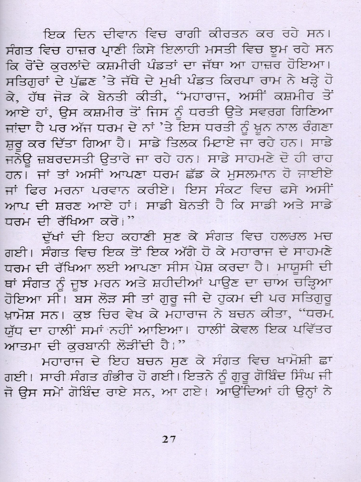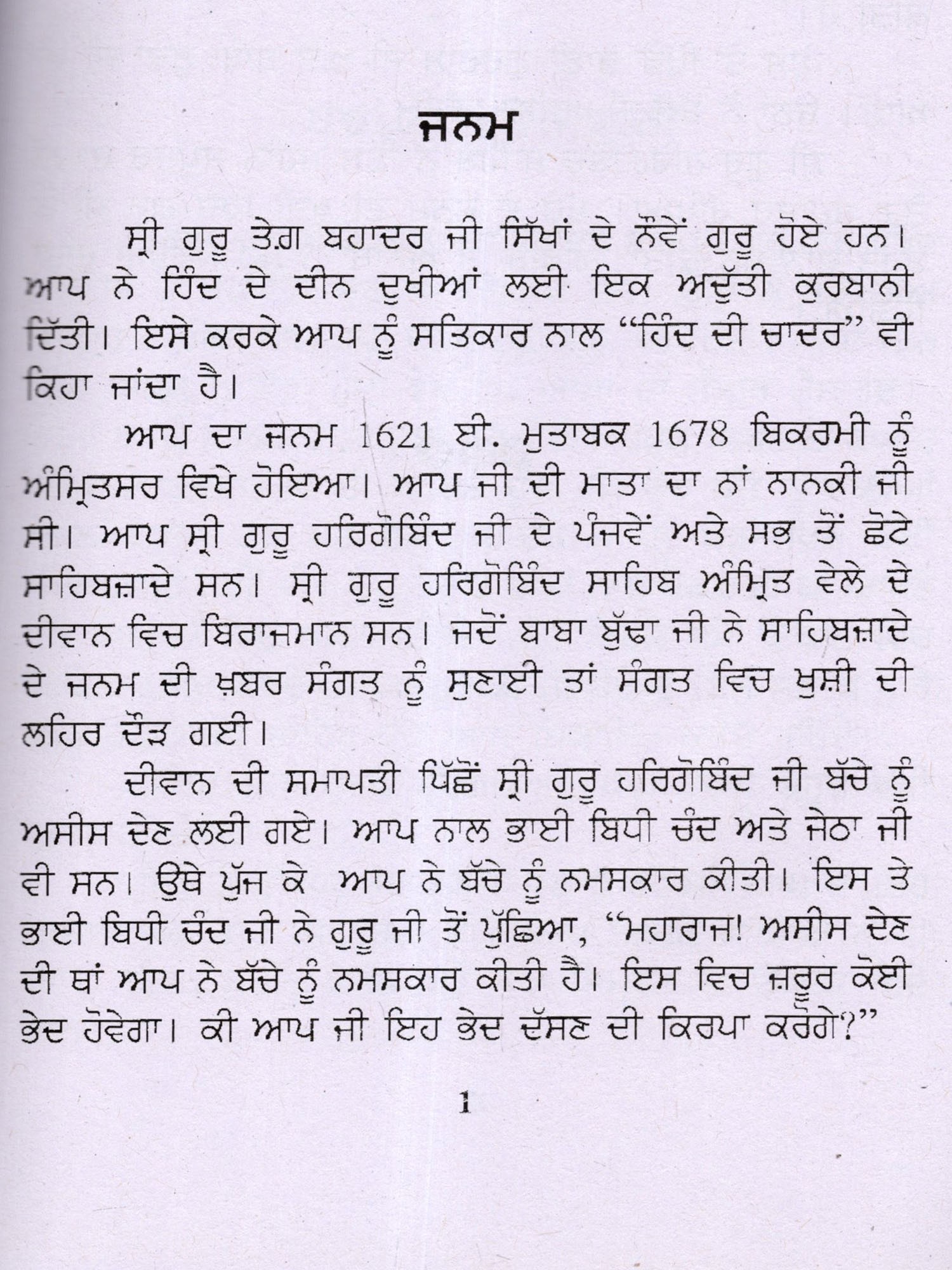 ਲਾਸਾਨੀ ਸ਼ਹੀਦ ਗੁਰੂ ਤੇਗ਼ ਬਹਾਦਰ ਜੀ- Lasani Shaheed Guru Teg Bahadur Ji (Punjabi)