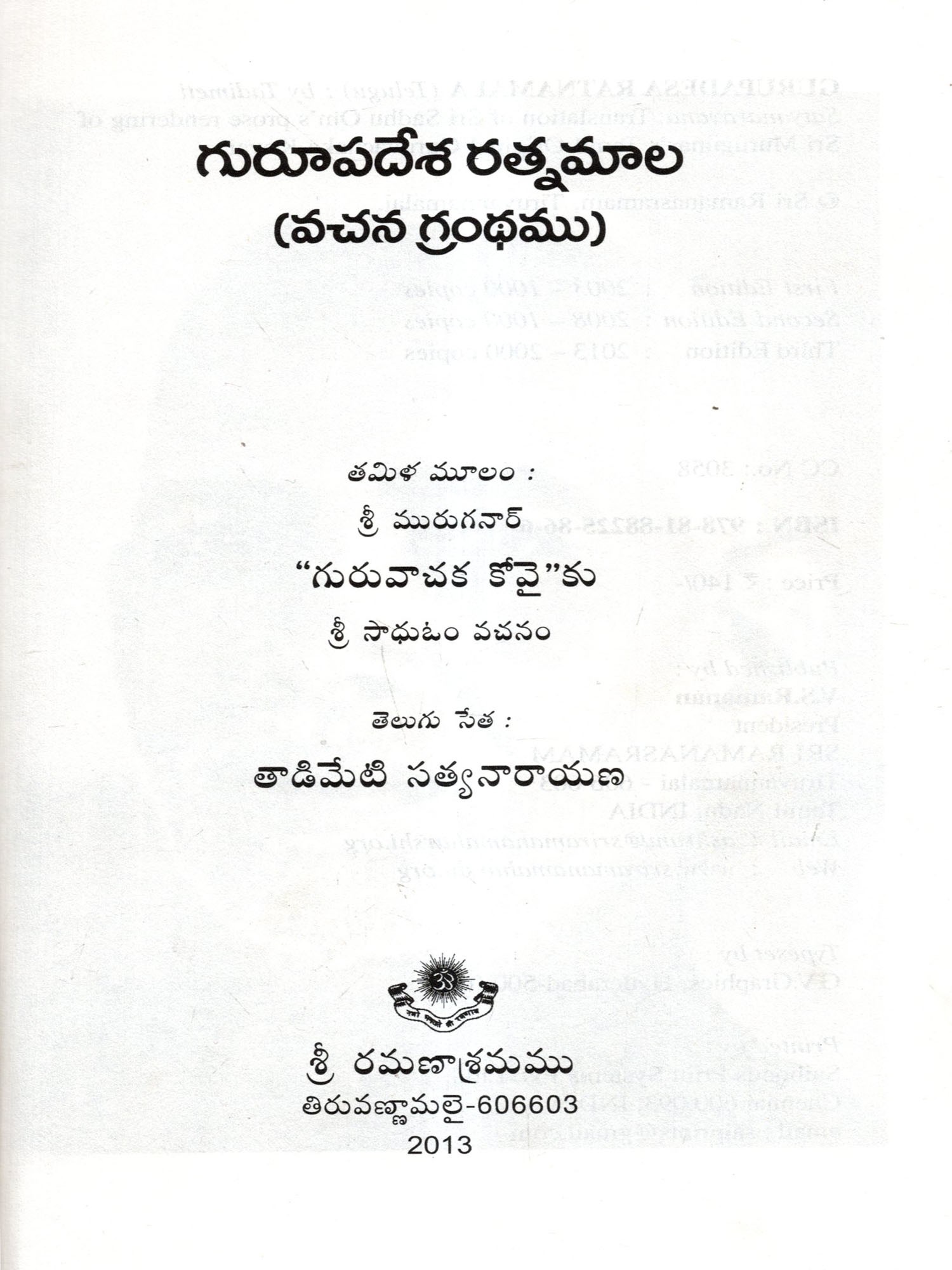 Sri Ramana Maharshi: Vari Upadesamu (Telugu)