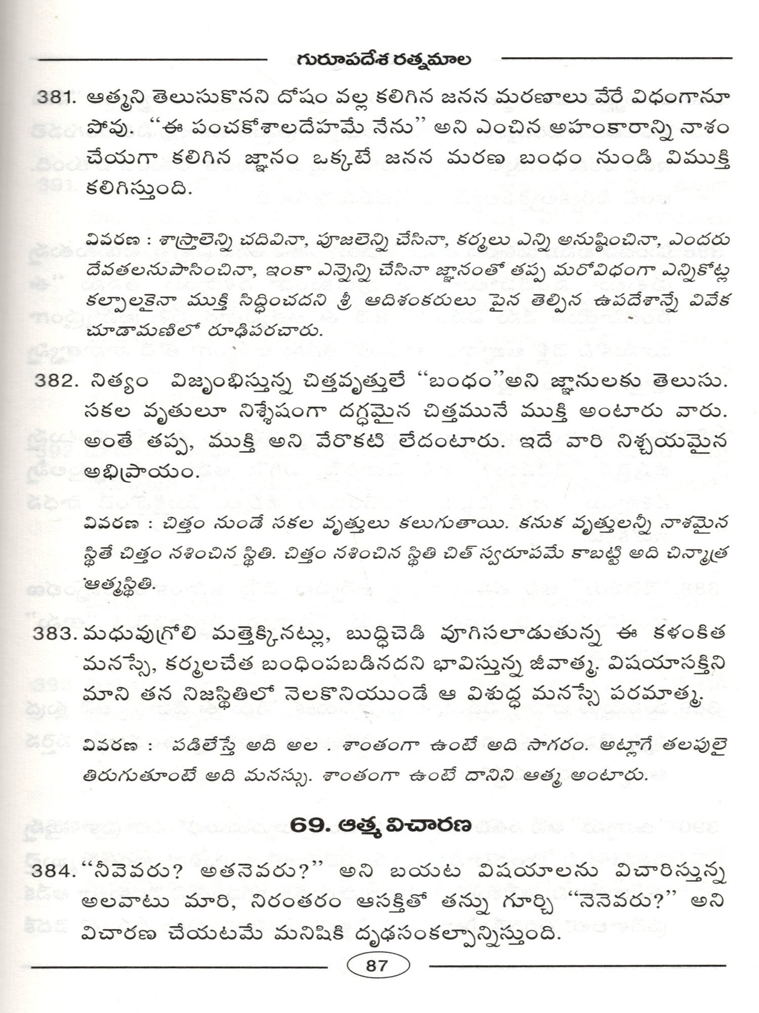 Atma Sakshatkaramu: Bhagavan Sri Ramana Maharshi Jeevitamu, Bodhanalu (Telugu)