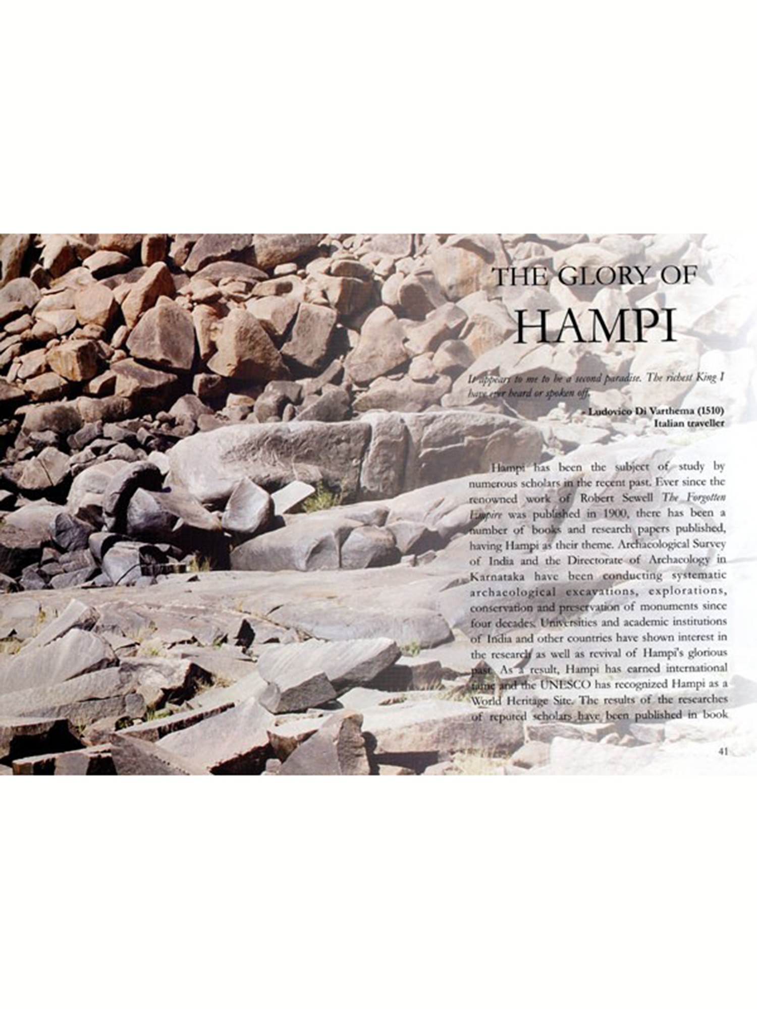 It gives me a great pleasure to present the second edition of the book named Hampi - the splendour that was. The first edition of the book was loved by the public. Demand for the same for the second edition necessitated the printing of this book.