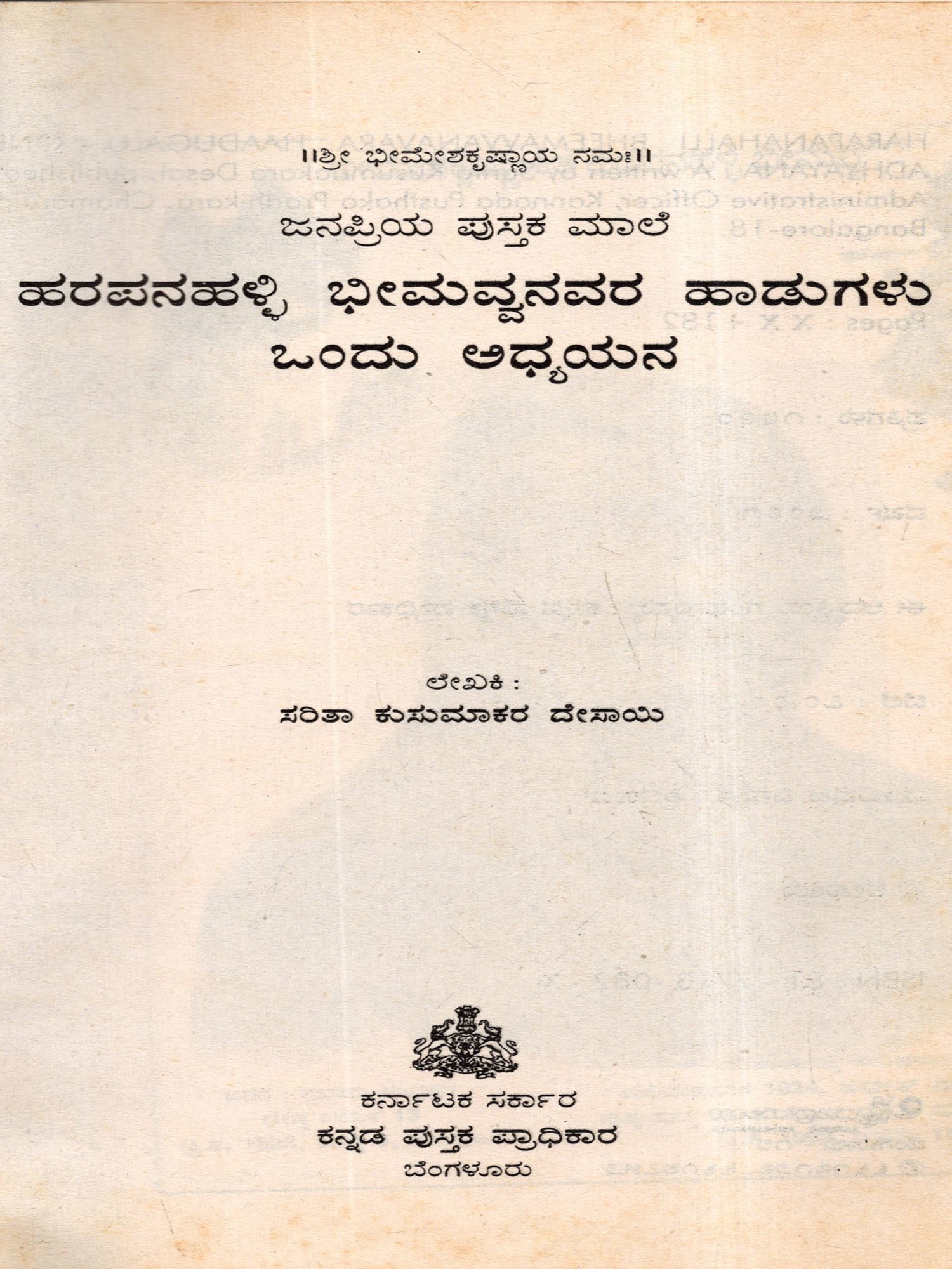ಚನ್ನಪಟ್ಟಣದ ಅಹೋಬಲದಾಸರ ಕೀರ್ತನೆಗಳು- Channapattanada Ahobaladasara Keerthane Galu (Devotional Songs of Above Haridasa About 1860 to 1930 A.D. in Kannada)