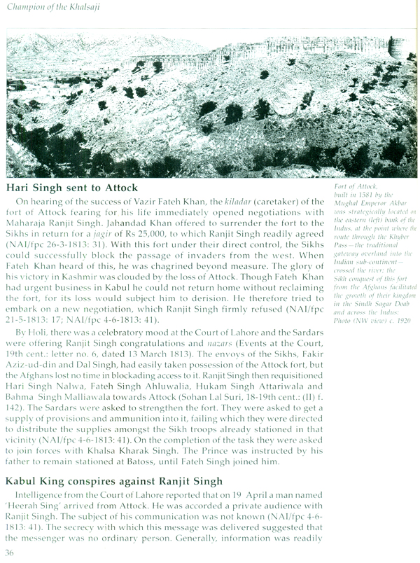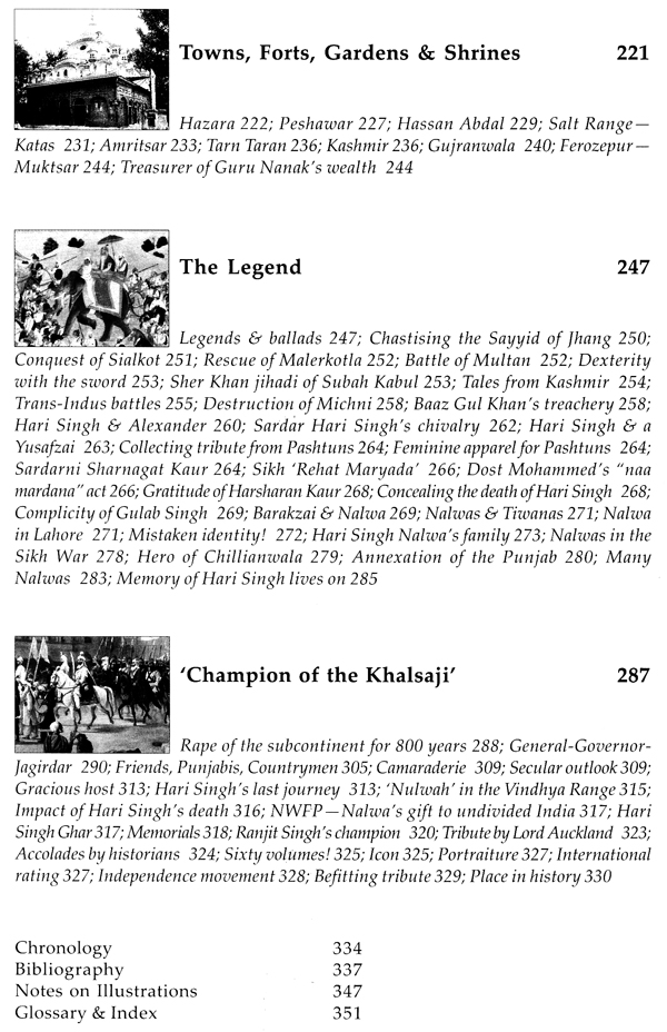 The archival and other records reveal the amazing story of the most formidable general of the Sikh Kingdom, Sardar Hari Singh alwa. It chronicles his achievements and participation in the reversal of eight centuries of history of the Indian subcontinent. Hari Singh Nalwa was not only instrumental in wresting a large portion of the Kingdom of Kabul, but also successfully governed it. The Sikh Kingdom retained its independence from the Afghans and the British. In the mid-twentieth century, the larger part of the erstwhile Sikh Kingdom went to form Pakistan. Two centuries on, Hari Singh's major field of operation - the north West Frontier Province, the region from where the Taliban arose - continued in a state of violent ferment. Hari Singh was instrumental in queuing of the first indigenous jihad uprising in the Indian subcontinent.