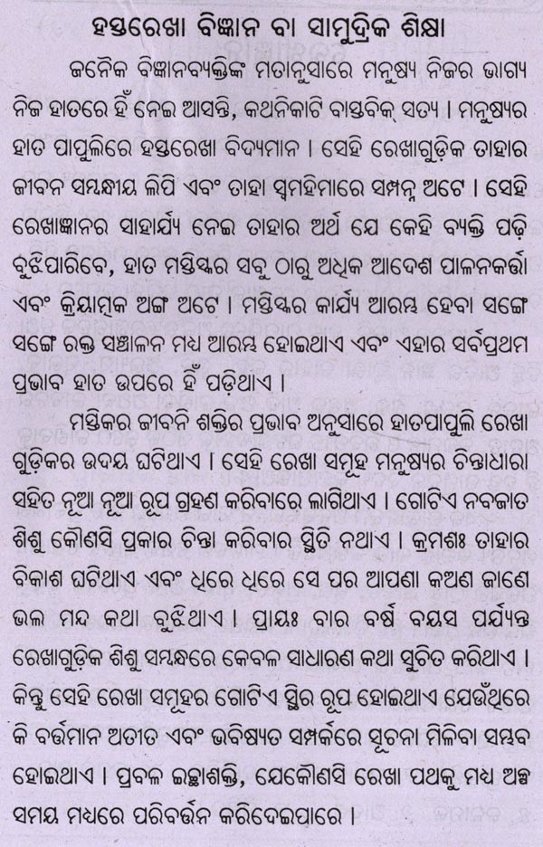 ହସ୍ତରେଖା ବିଜ୍ଞାନ: Hastarekha Bigyana (Oriya)